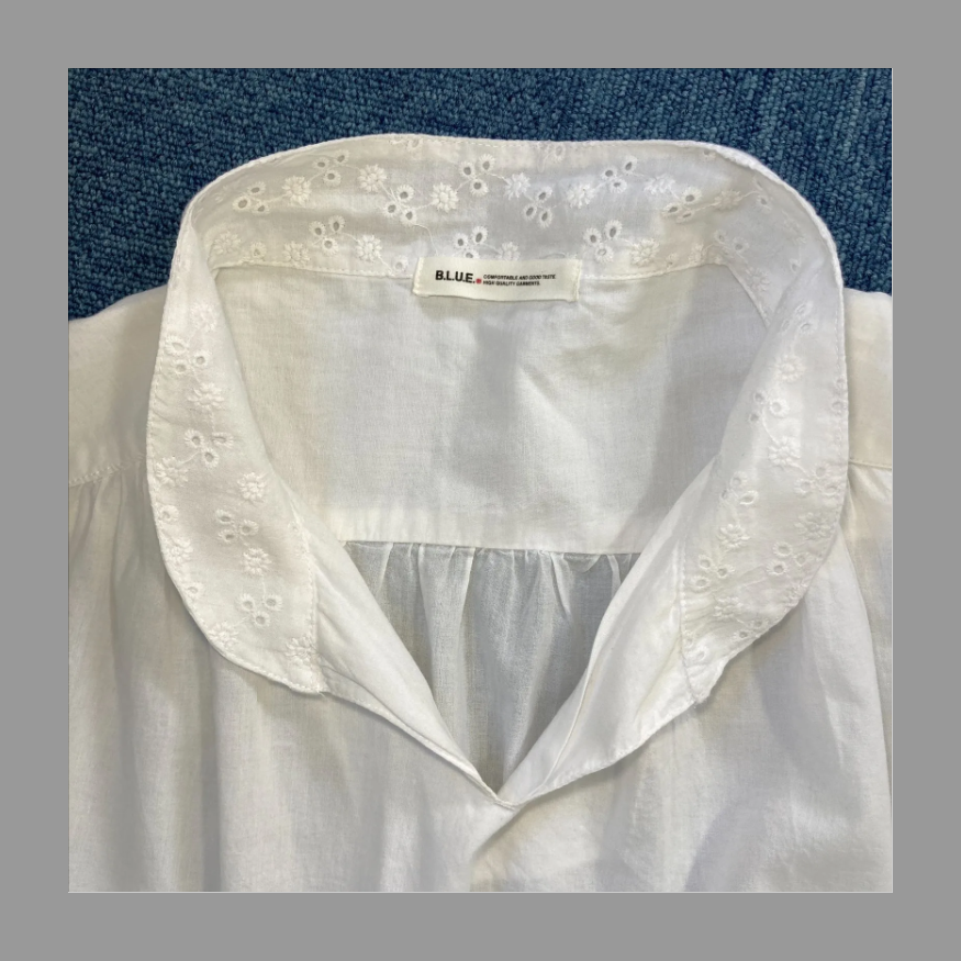 長袖ですが、白色で襟の部分にレースがあり爽やかなイメージ(^^♪
