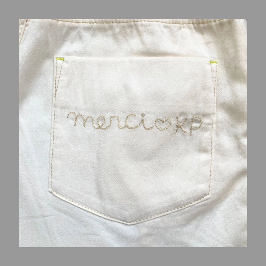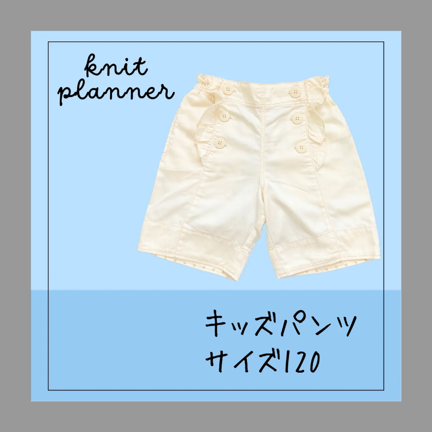6233 ☆knit planner ニットプランナー ショートパンツ 120 アイボリーホワイト フリル 飾りボタン 水玉 子供服 キッズUSED 古着