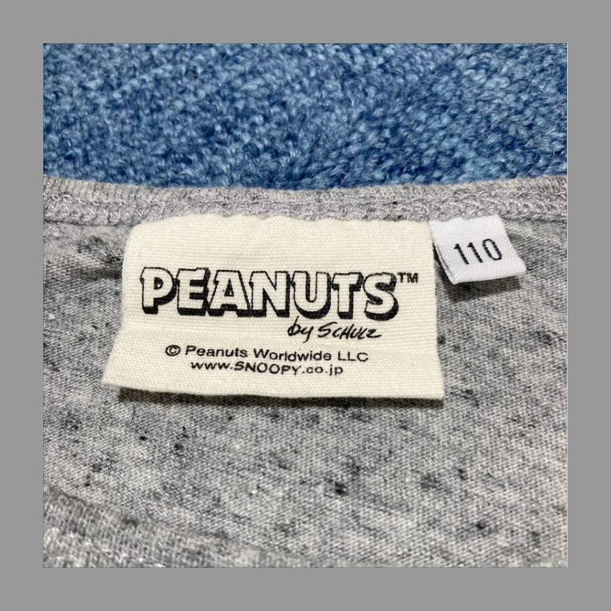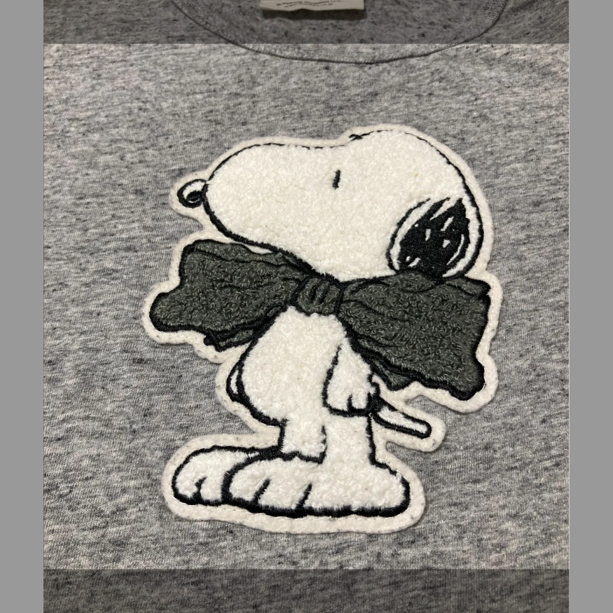春夏シーズンにぴったりの、スヌーピーの立体プリントがかわいい、グレーカラーのキッズサイズのロング Tシャツです。