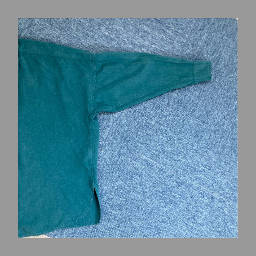 春・秋シーズン向けの、グリーンカラーも鮮やかな、ロングスリープ丈のトップス です。