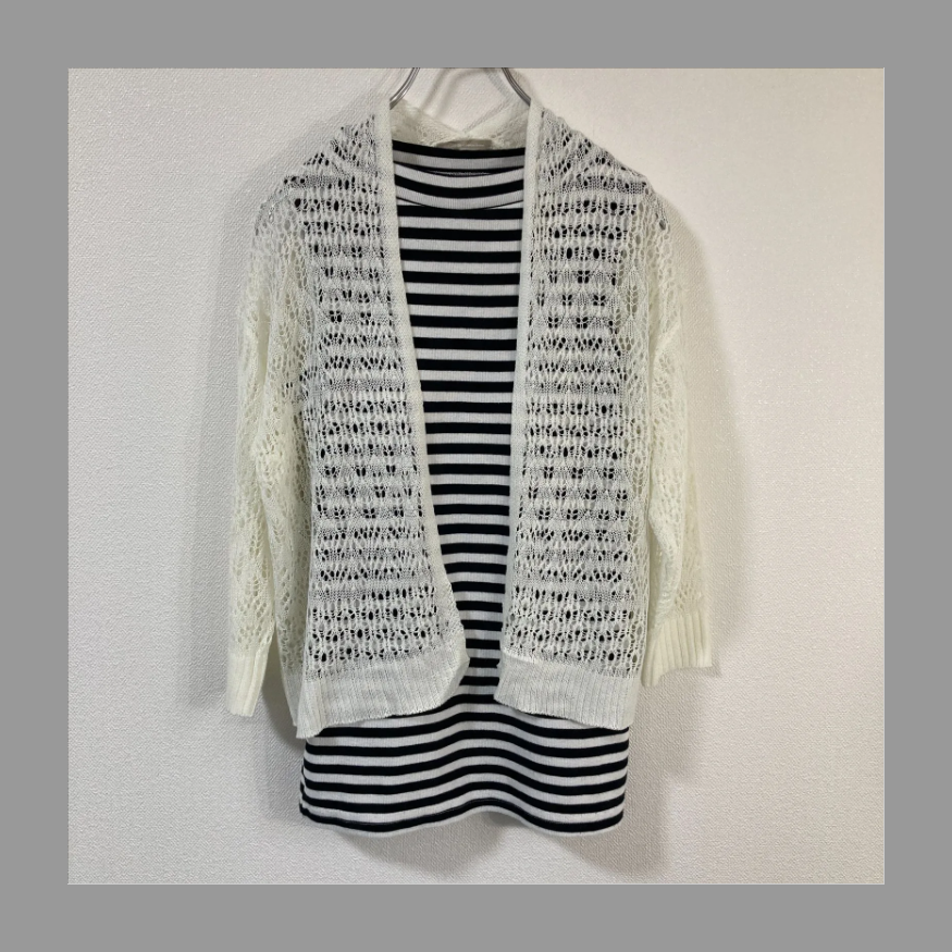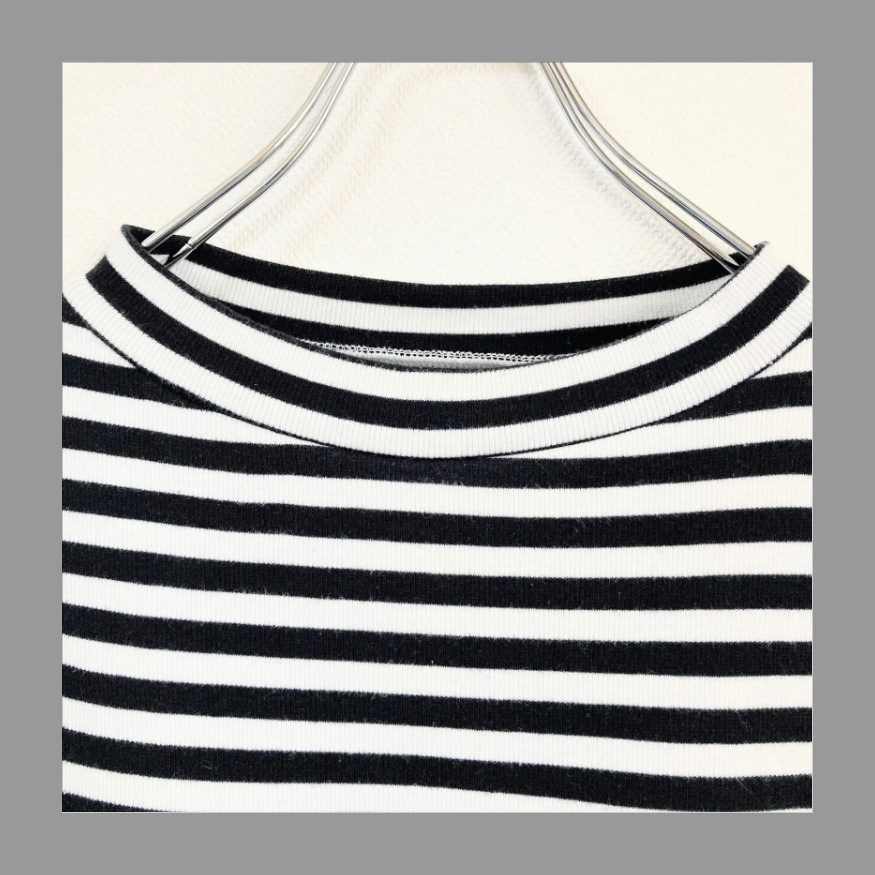 白黒のボーダー柄の、ノースリーブのトップスです。