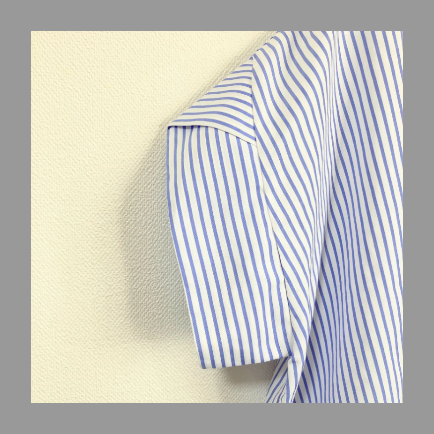 細く見せる縦のストライプ柄と、ヒップが隠れる裾の長さで、体型カバーにおすすめです。