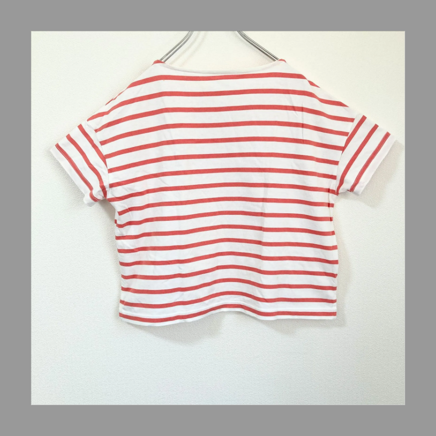 シンプルなラグランタイプのシルエットのボーダー柄の半袖のトップスです。