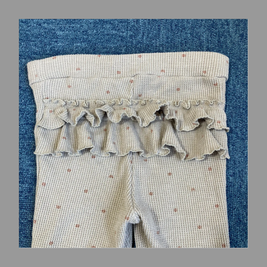 グレージュ系の渋めのカラーリングに、赤茶色のドット柄のスパッツ、正面に茶色のリボンがワンポイントが可愛い♡