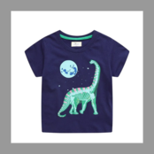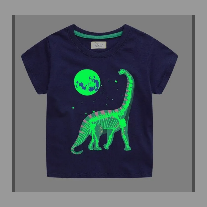 6643★ 【新品】キッズ 光るTシャツ 恐竜と月 恐竜 Tシャツ ネイビーカラー 蓄光プリント サイズ90 100 110 120 130 春夏 人気 夏休み 通学 休日 普段着 プレゼント | one’s will