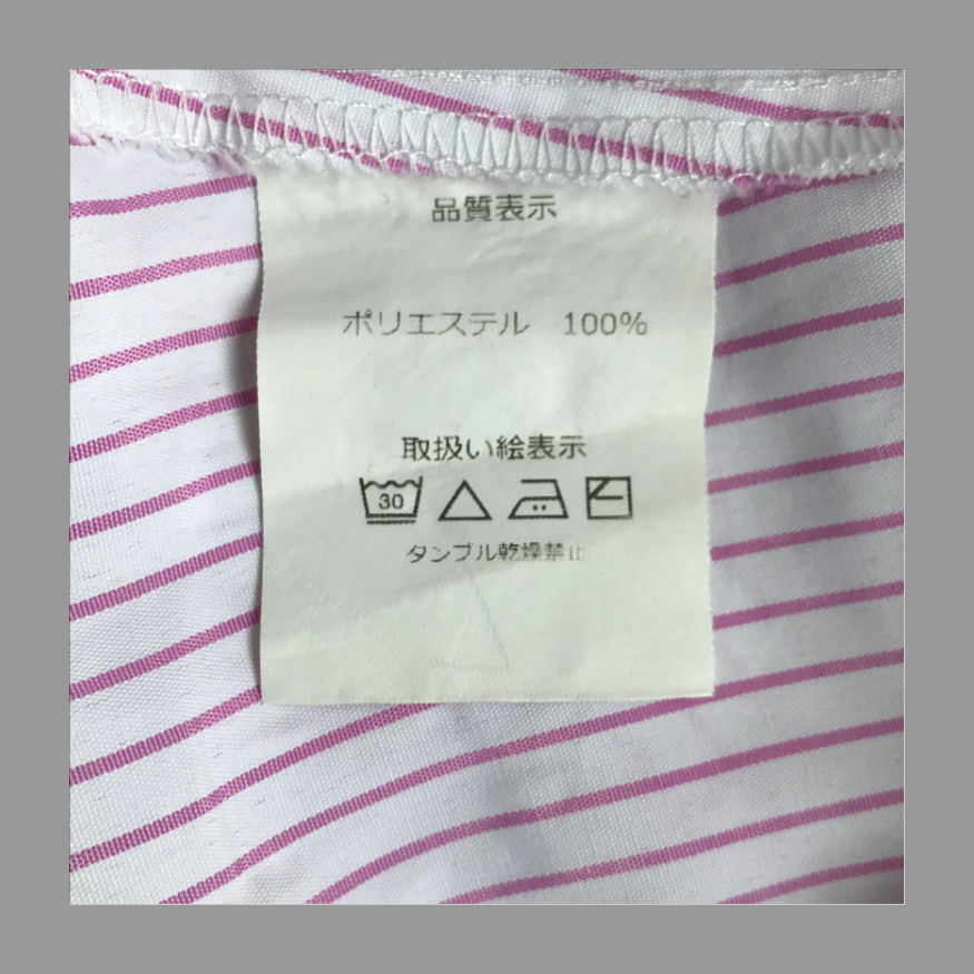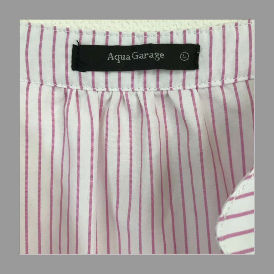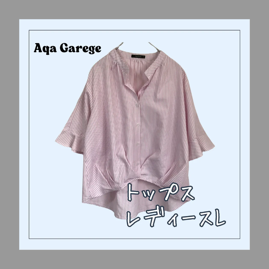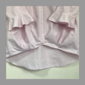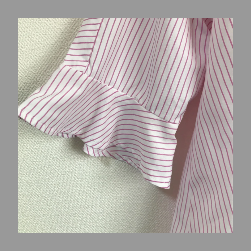 WHITEにピンクのストライプ柄の爽やかなトップスで襟が個性的です。スタンドカラー気味な襟がシンプルにオシャレだと思います(^_^)v☆