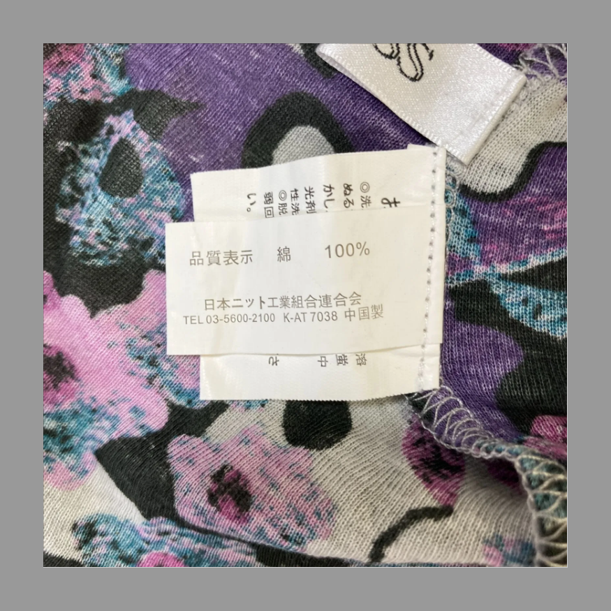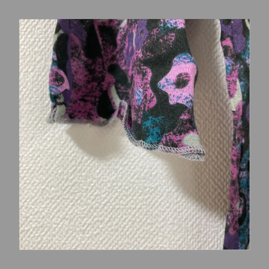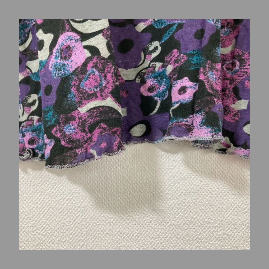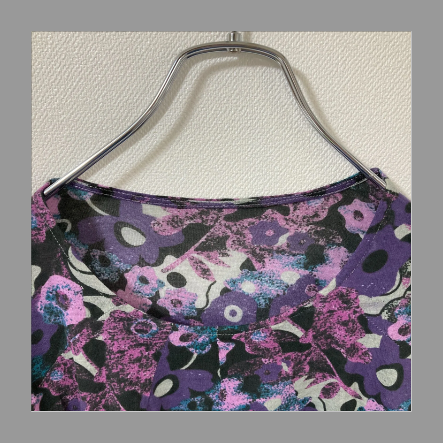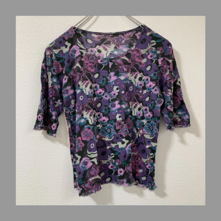 花の総柄の薄手のトップスで、若干透け感がある感じです。薄手なので、重ね着もできるので、気軽に着用できるアイテムだと思います(*´ω`*)!!