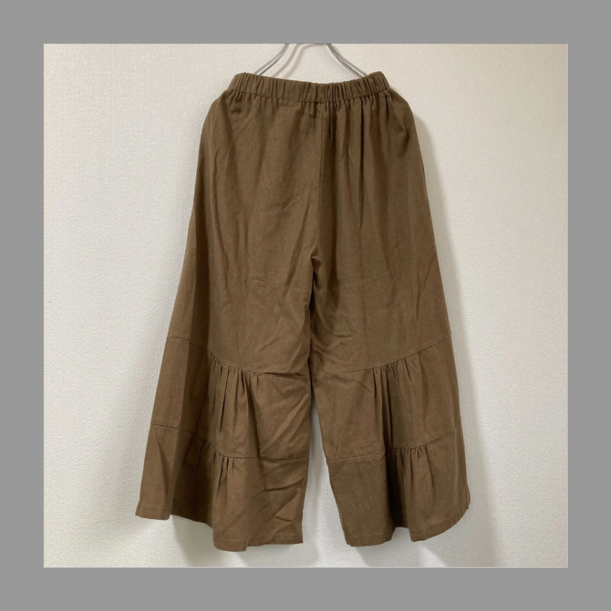 6627 ★レディース ボトムス ブラウン 茶色 パンツ ポケットなし ガウチョパンツ ワイドパンツ イージーパンツ ウエストゴム Lサイズ USED 古着