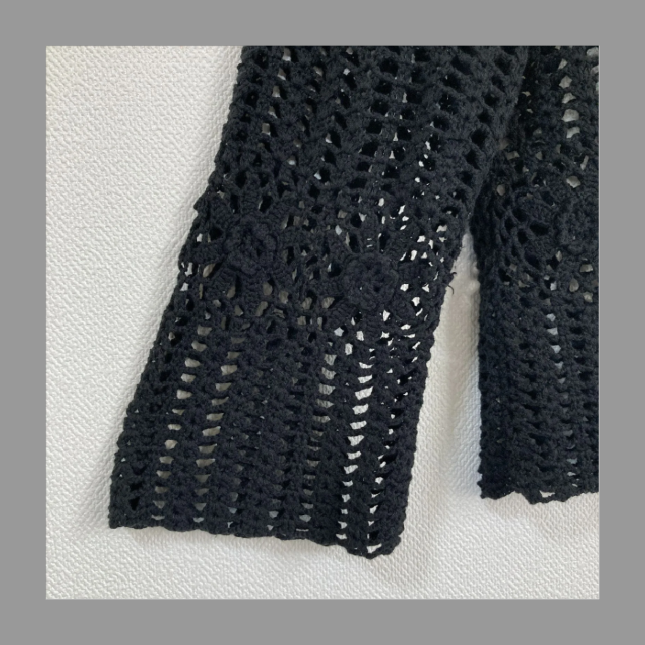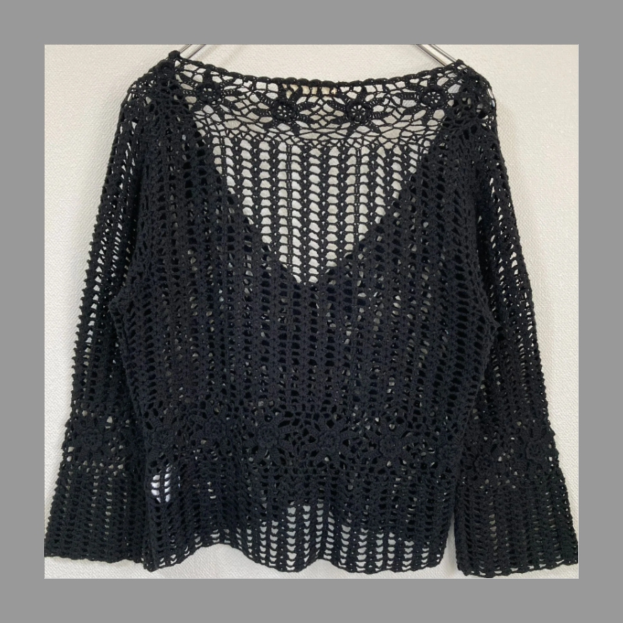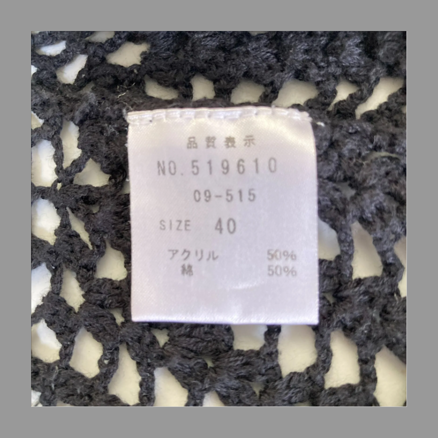 6658 ★レディース トップス カーディガン レース編み シースルー BLACK 黒 40 L USED 古着