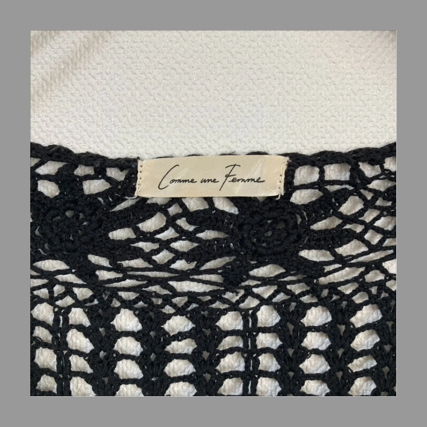 短丈のレース編の前リボンつきのトップスで、Tシャツ、タンクトップ、キャミなどの上からサラッと羽織るだけで、流行りを演出できるカッコよくも可愛くも決まるアイテムです(*´ω`*)♡☆彡