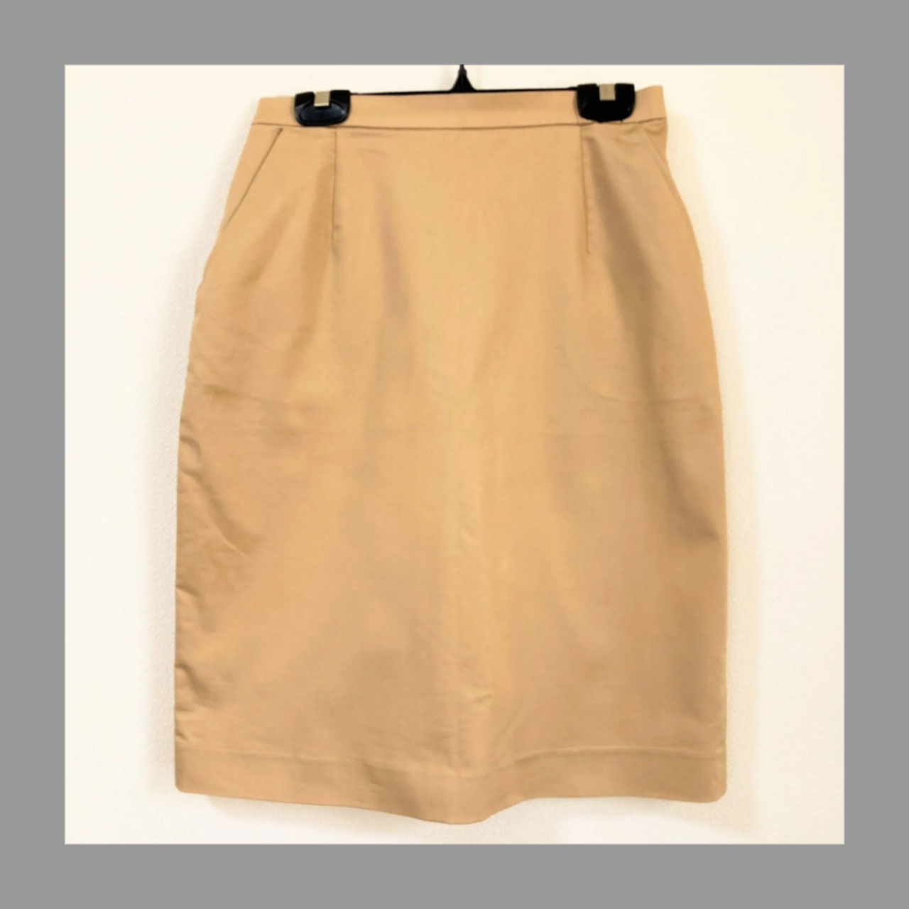ベージュのひざ丈のタイトスカートなのでどんな服装にも合わせやすいと思います(*^^)v