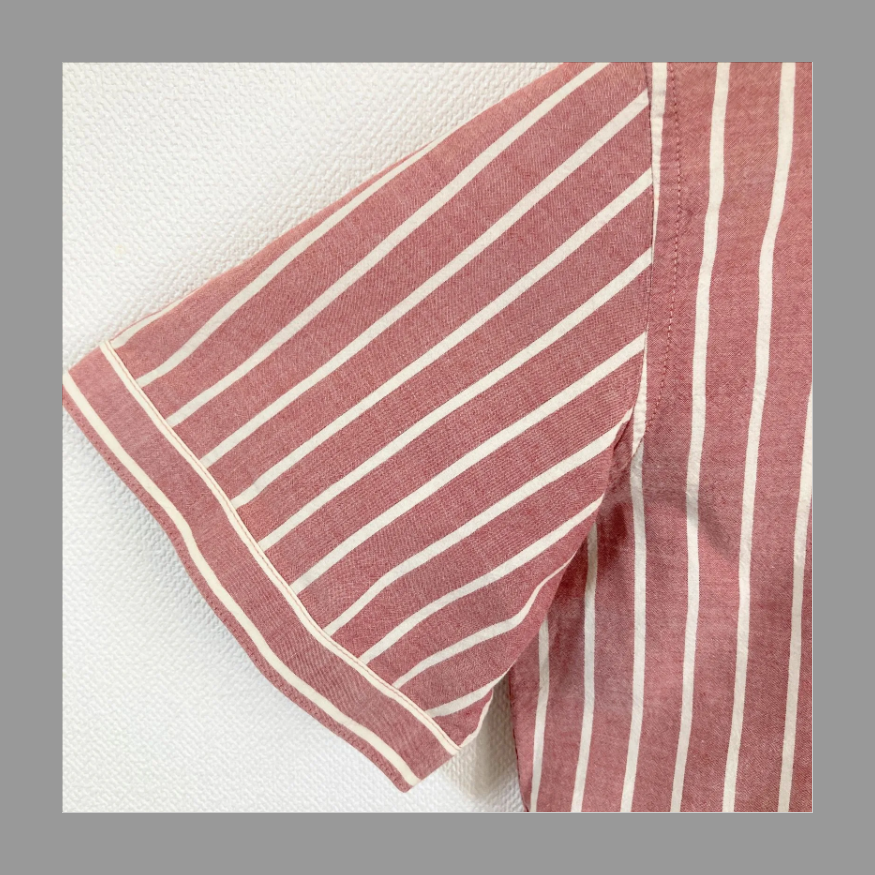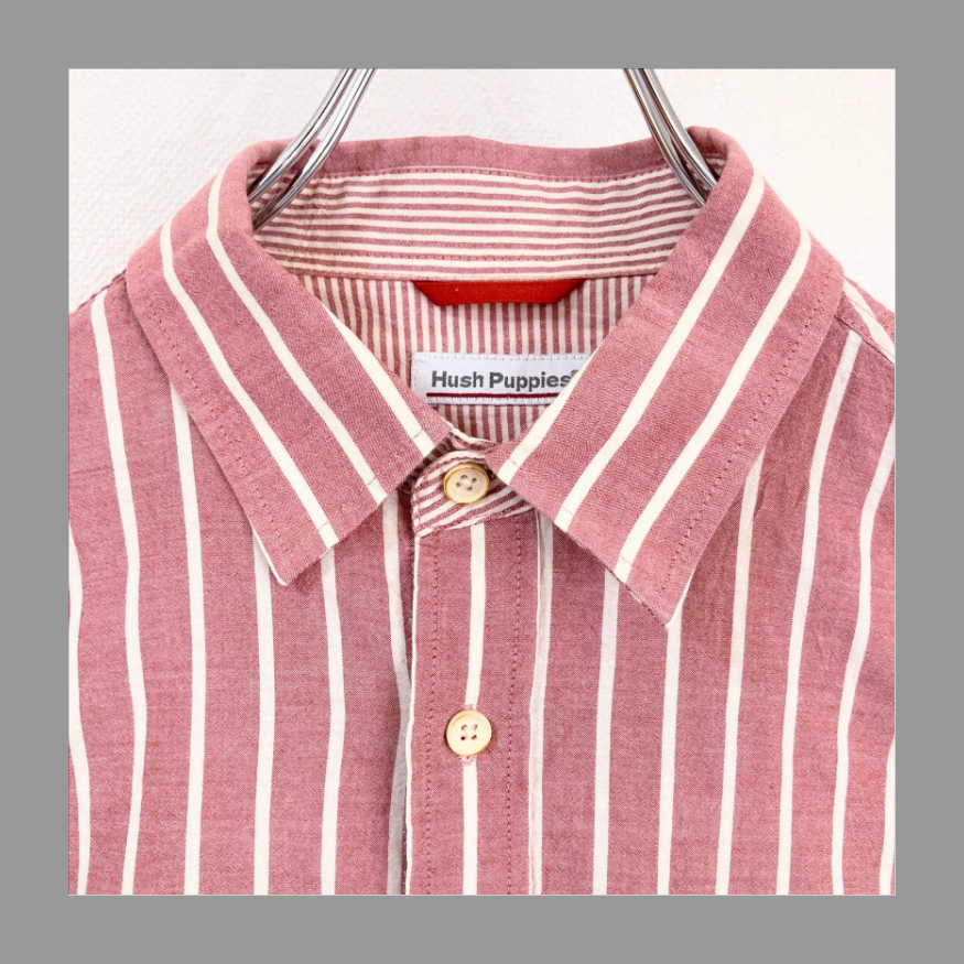 ハッシュパピーのサーモンピンクとオフホワイトのストライプシャツです(*^^)v