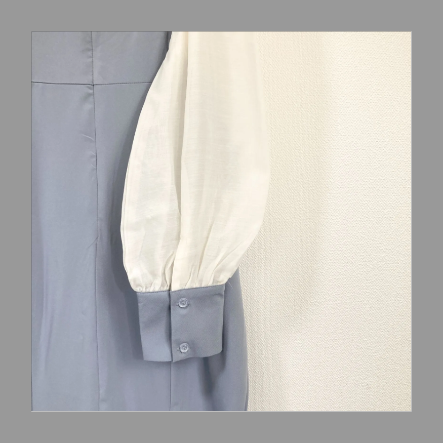 水色と白の落ち着いたトーンの可愛いワンピースです(*´ω`*)♡