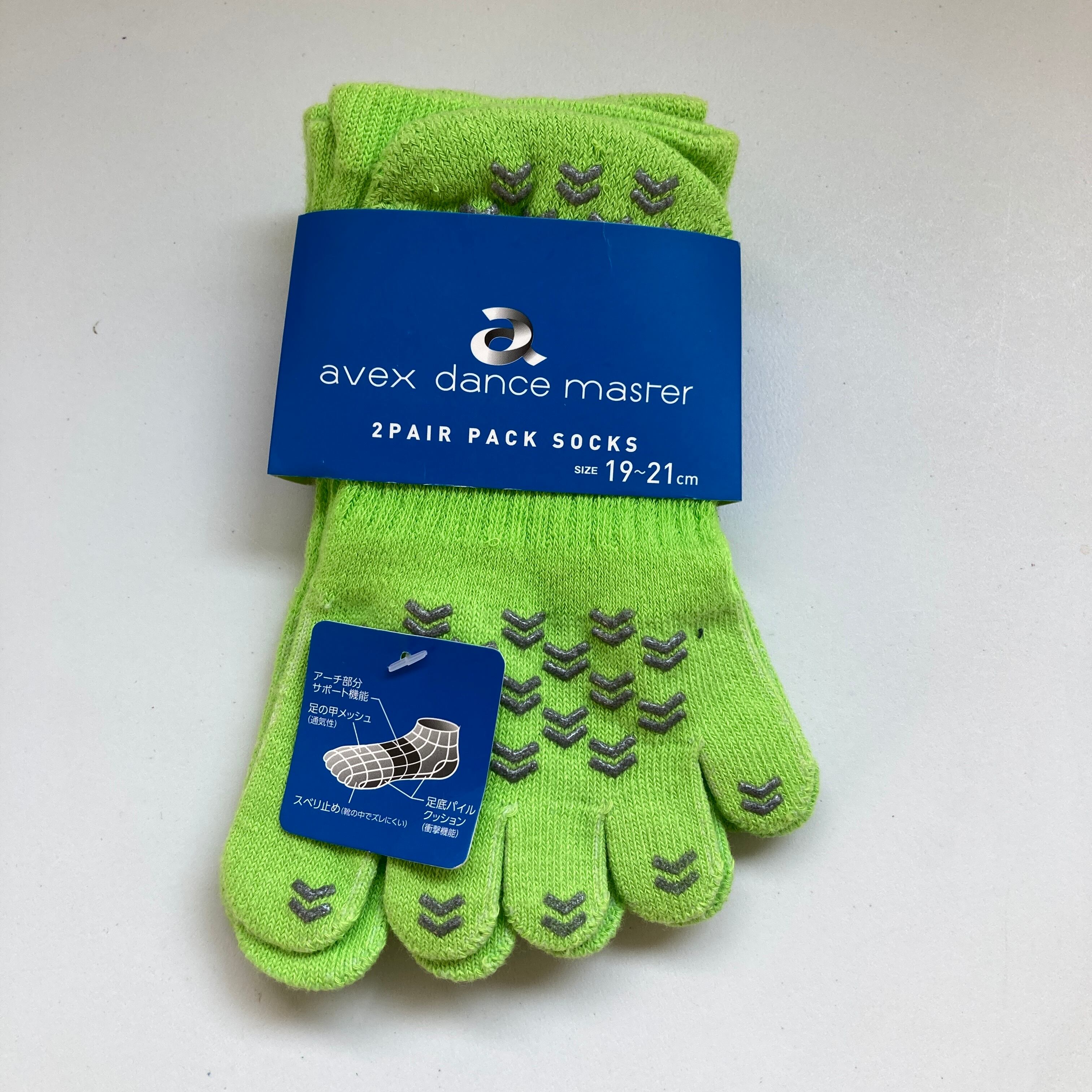693 ★ 新品未使用 キッズ 2足組ソックス 5本指ソックス 19~21cm avex dance master サポート機能 足裏すべり止め 足底パイルクッション グリーン
