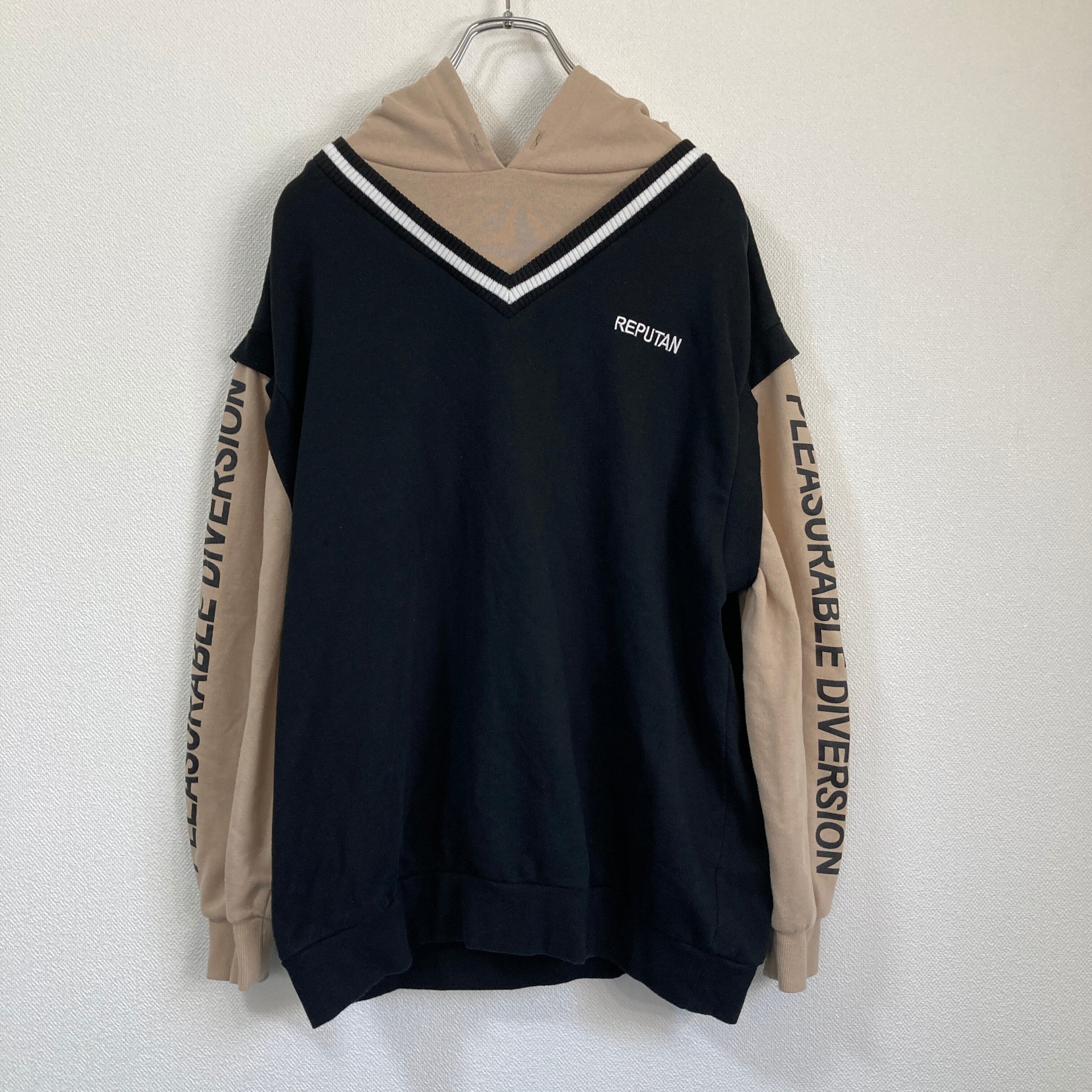 ブラックとブラウンの重ね着風な、カジュアルなパーカーです(*´▽`*)♡