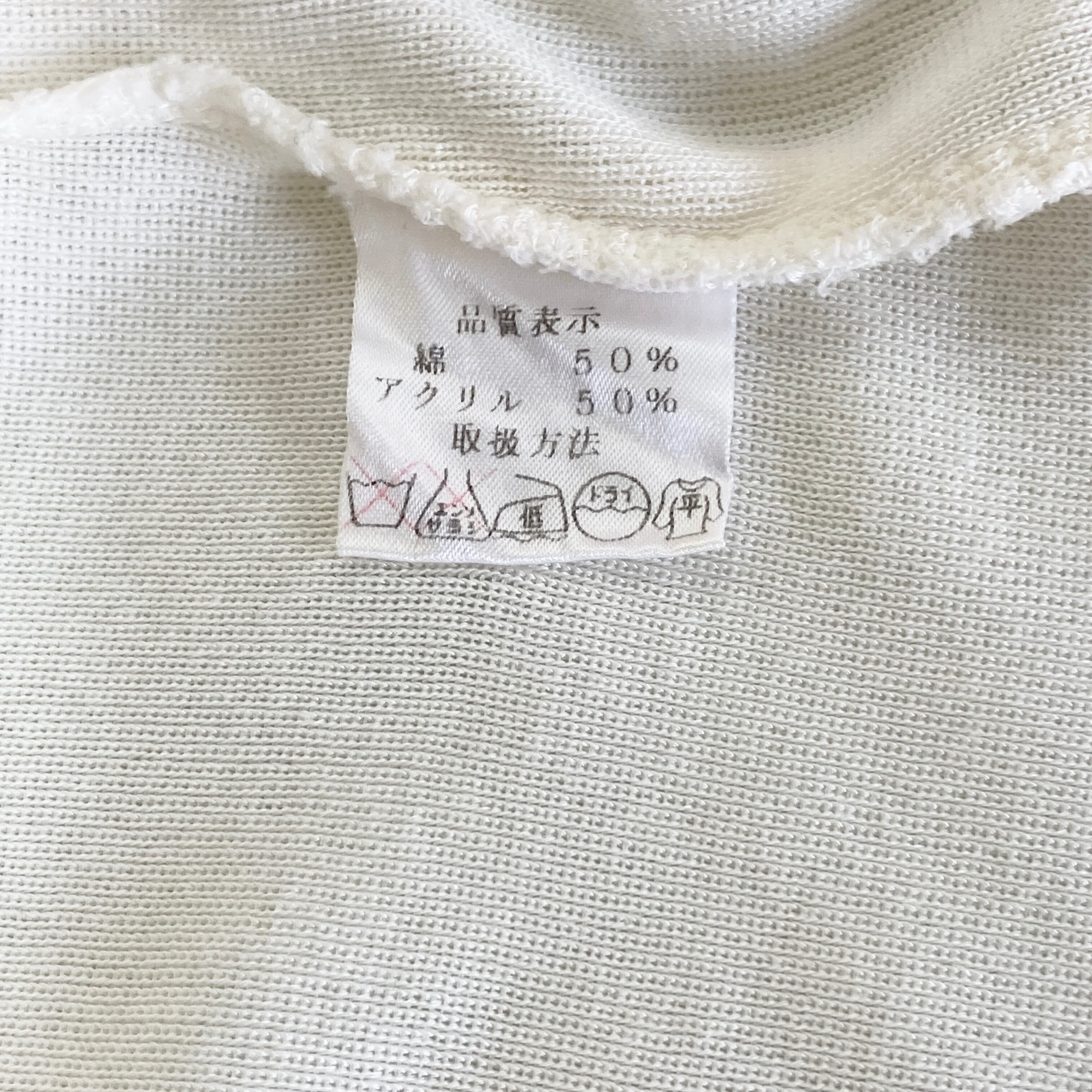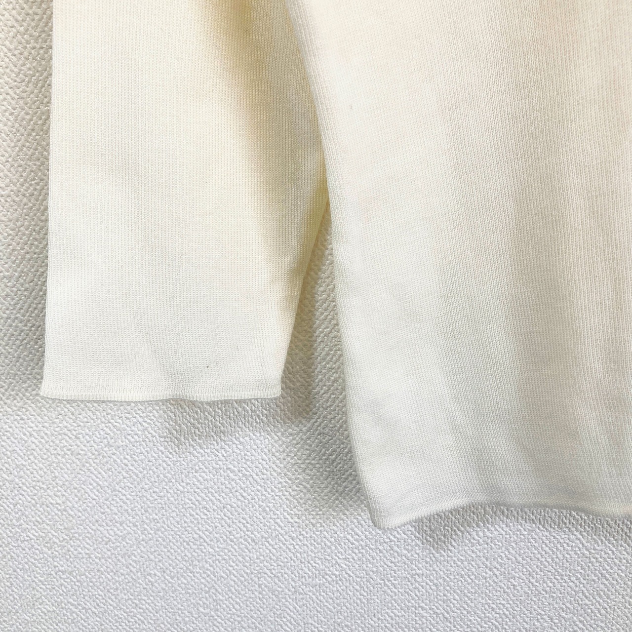 オフホワイトの薄手のカットソーで、落ち着いた感じの上品なお色です。重ね着などして秋冬に楽しんでもらえるような一着だと思いいます(*´ω`*)!!