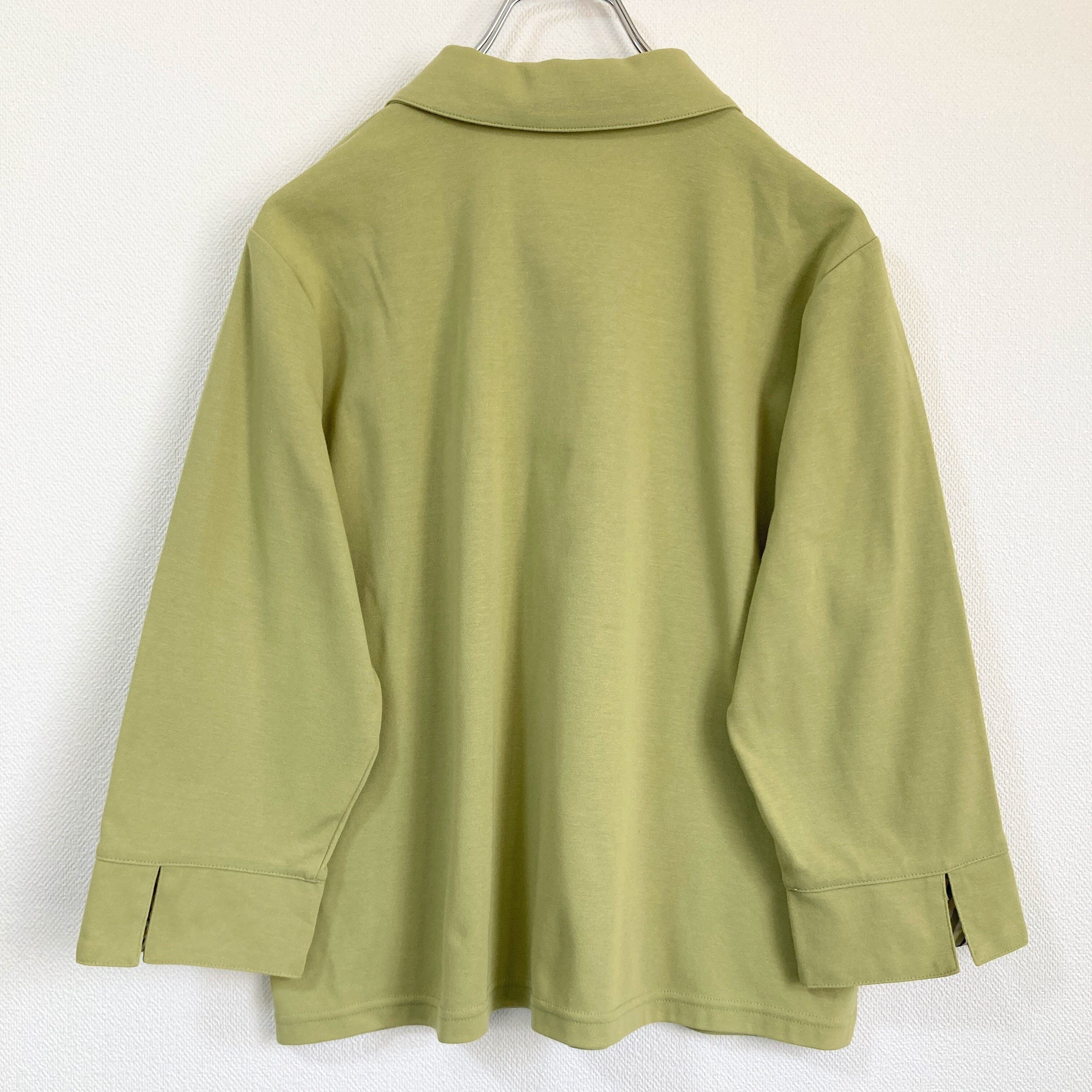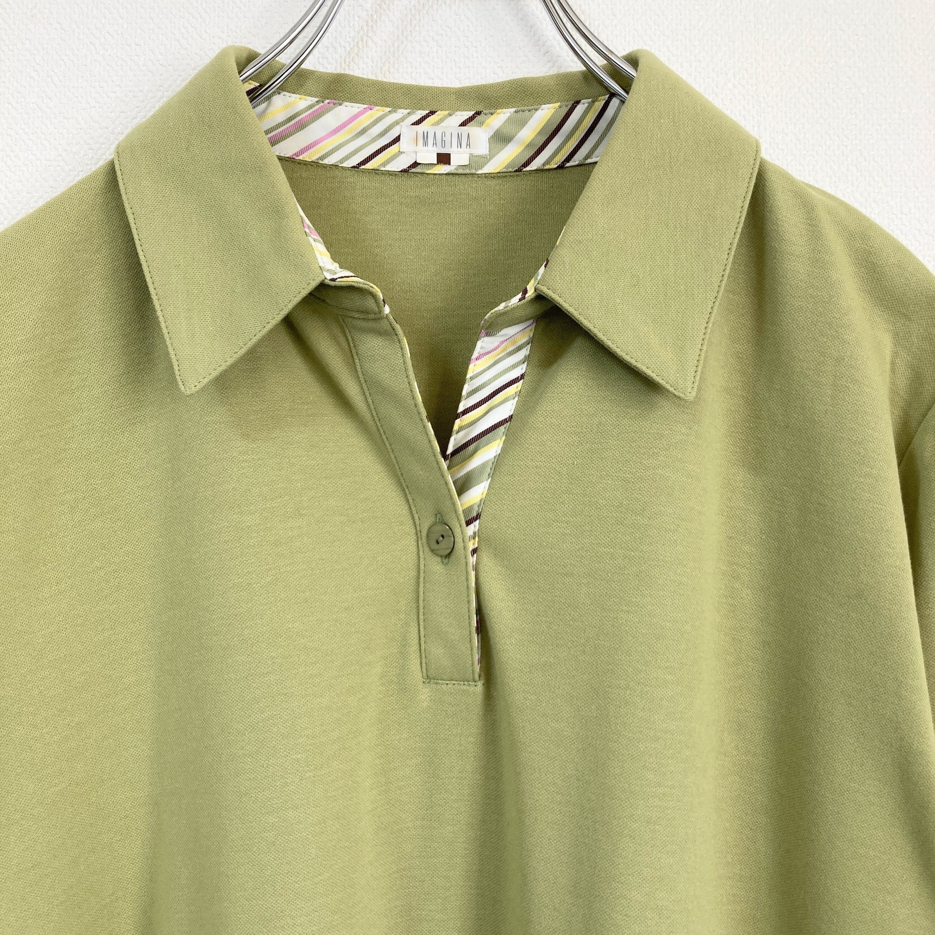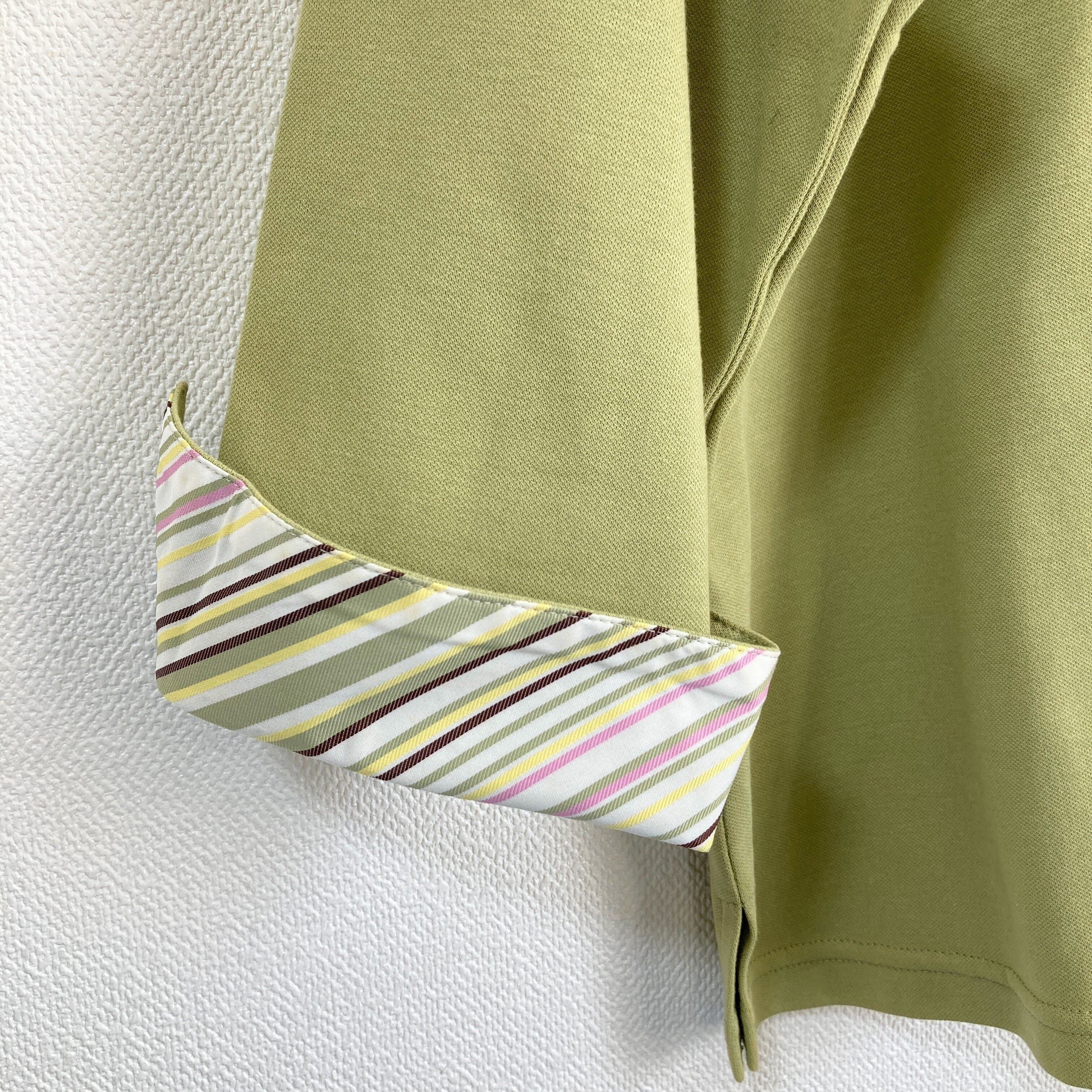 6867 ★ レディース トップス ポロシャツ IMAGINA 七分袖 FREE グリーン ピスタチオグリーン ストライプ柄 USED 古着