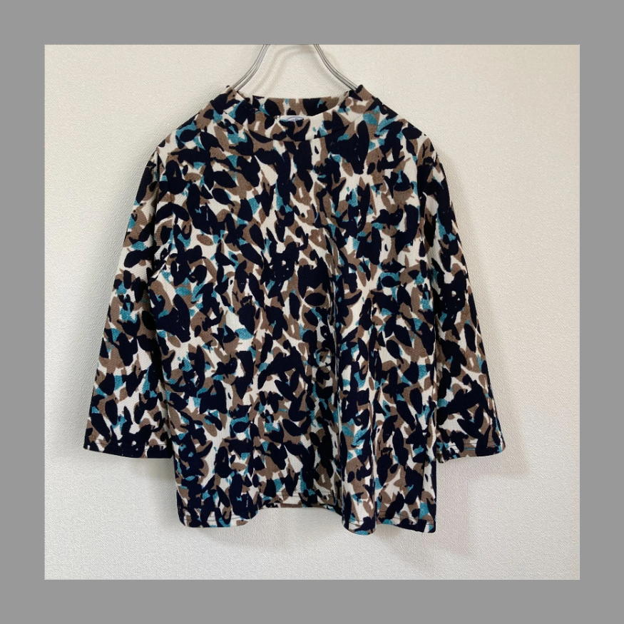 抽象的な、幾何学模様的な柄のカットソーです(*^^)v