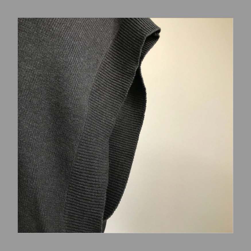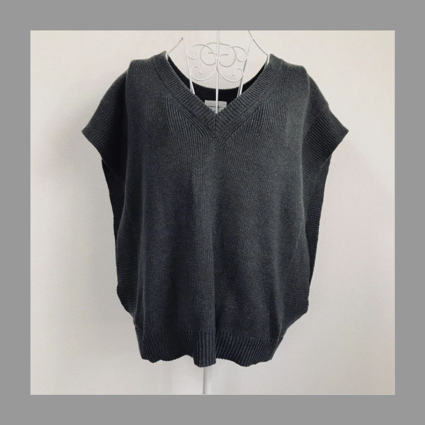 両脇が広く開いた、グレーのVネックのベストです(*^^)v