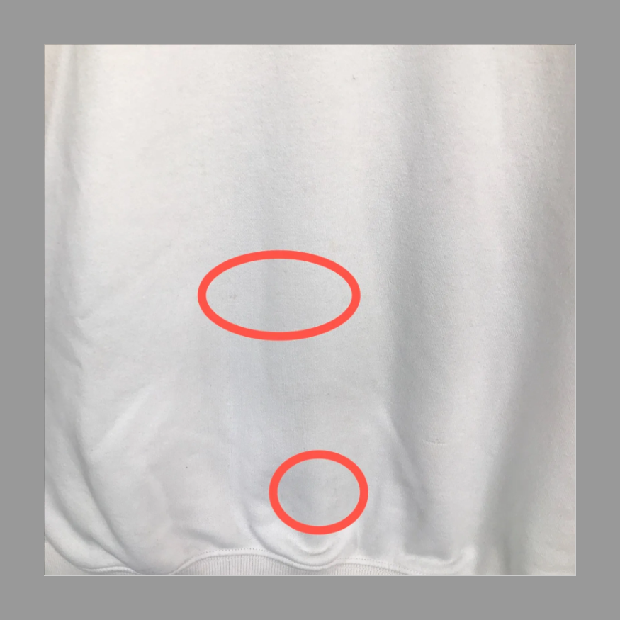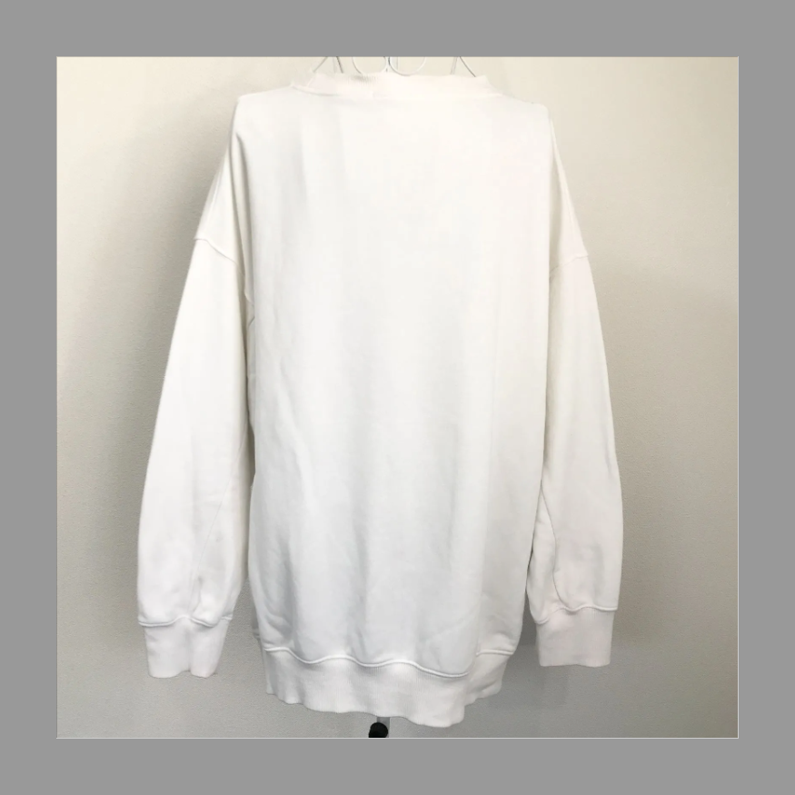 白のクルーネックのシンプルなスウェットなんですけど、大き目なつくりなのでオーバーサイズでゆったり着ていただけると思います(^_-)-☆