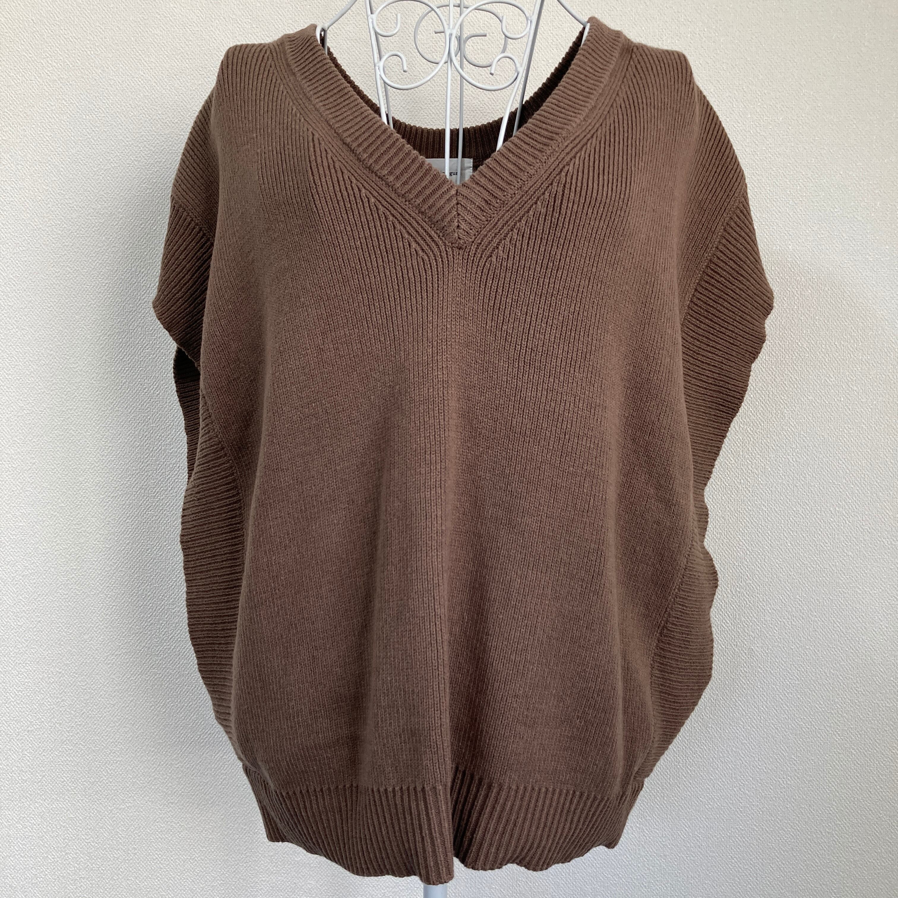 両脇が広く開いた、ブラウンのVネックのベストです(*^^)v