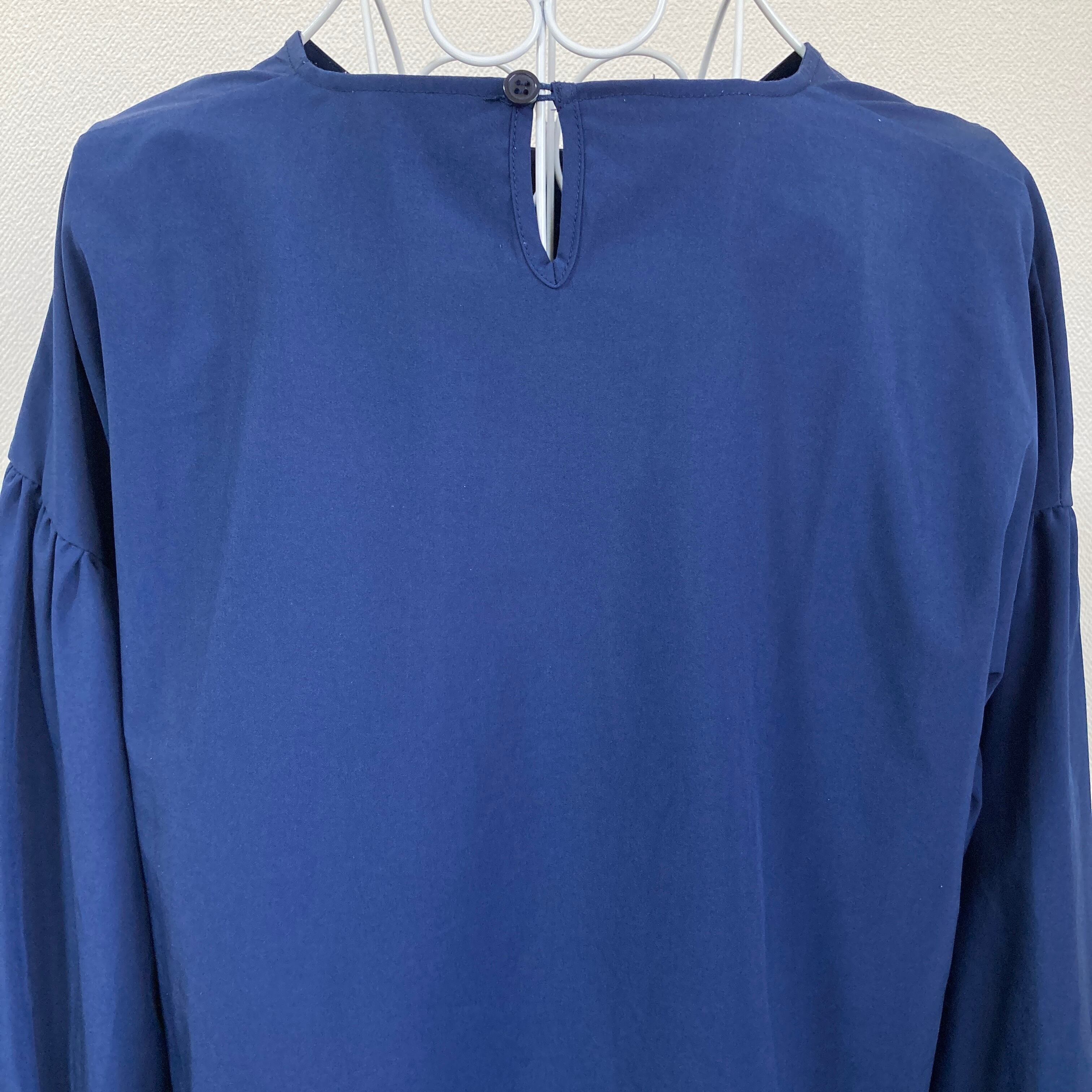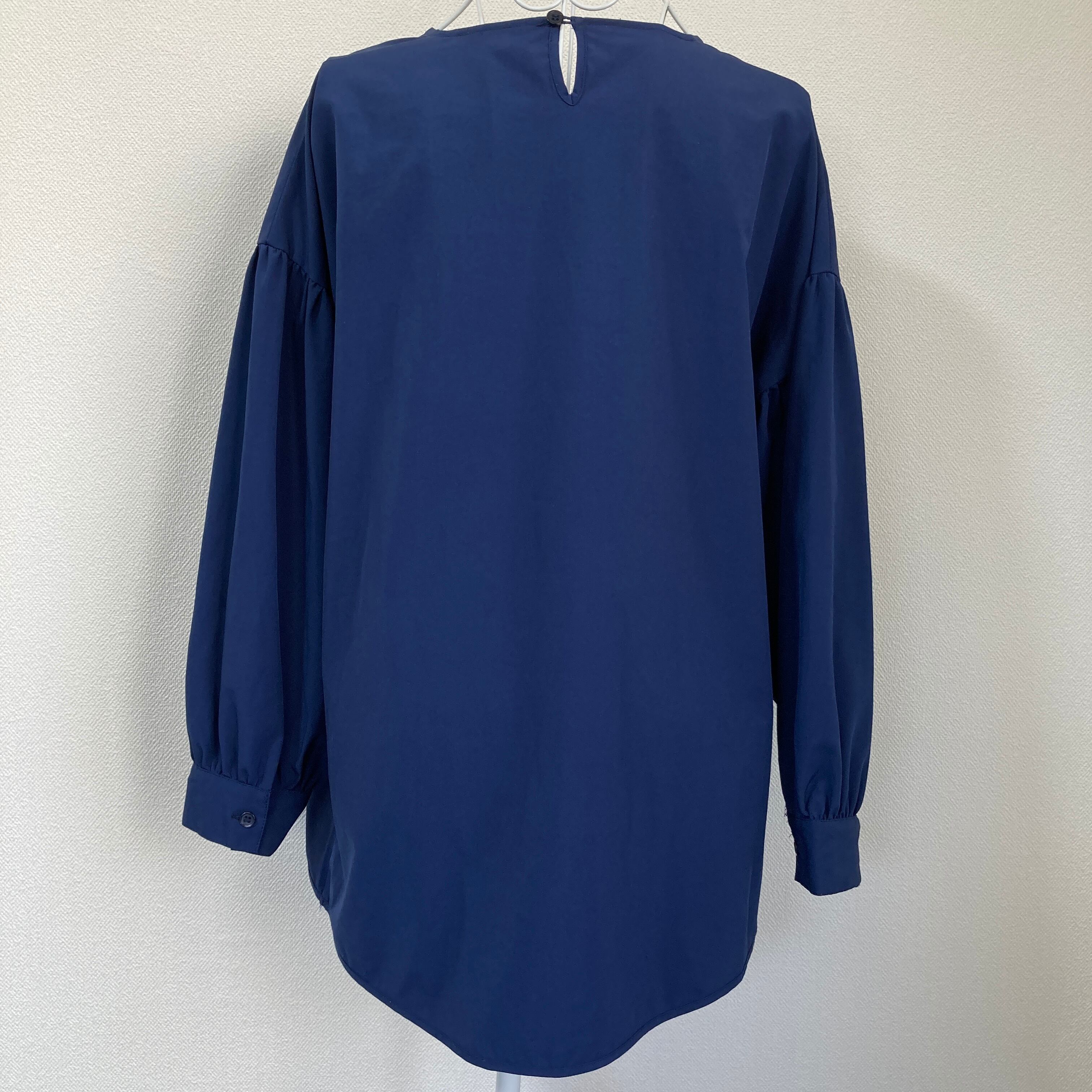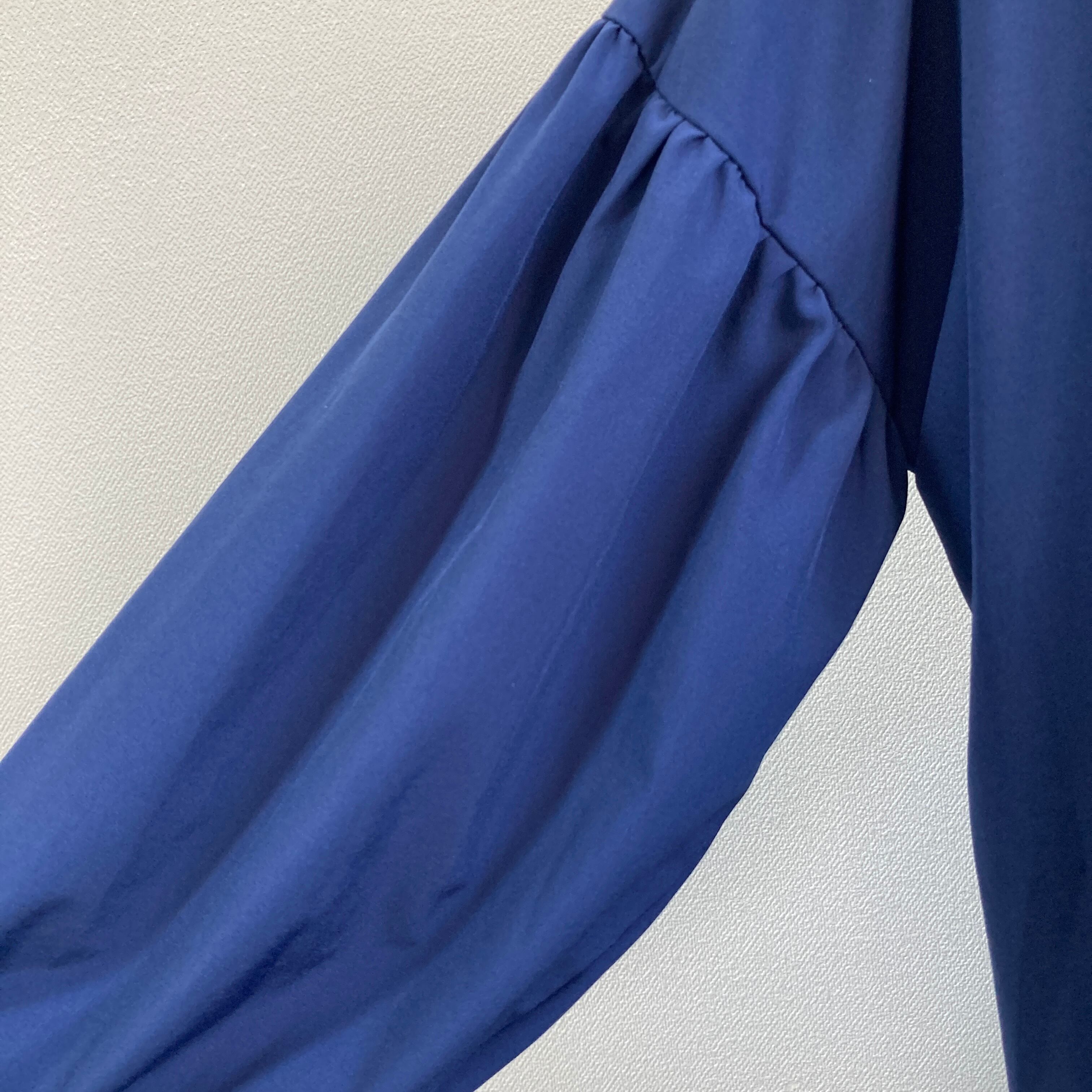 紺色のブラウスで、薄手ですがパフスリーブのフワフワした感じが可愛いです!前にもタックが付いていて、タックインした感じの仕様になっています(*´▽`*)☆彡
