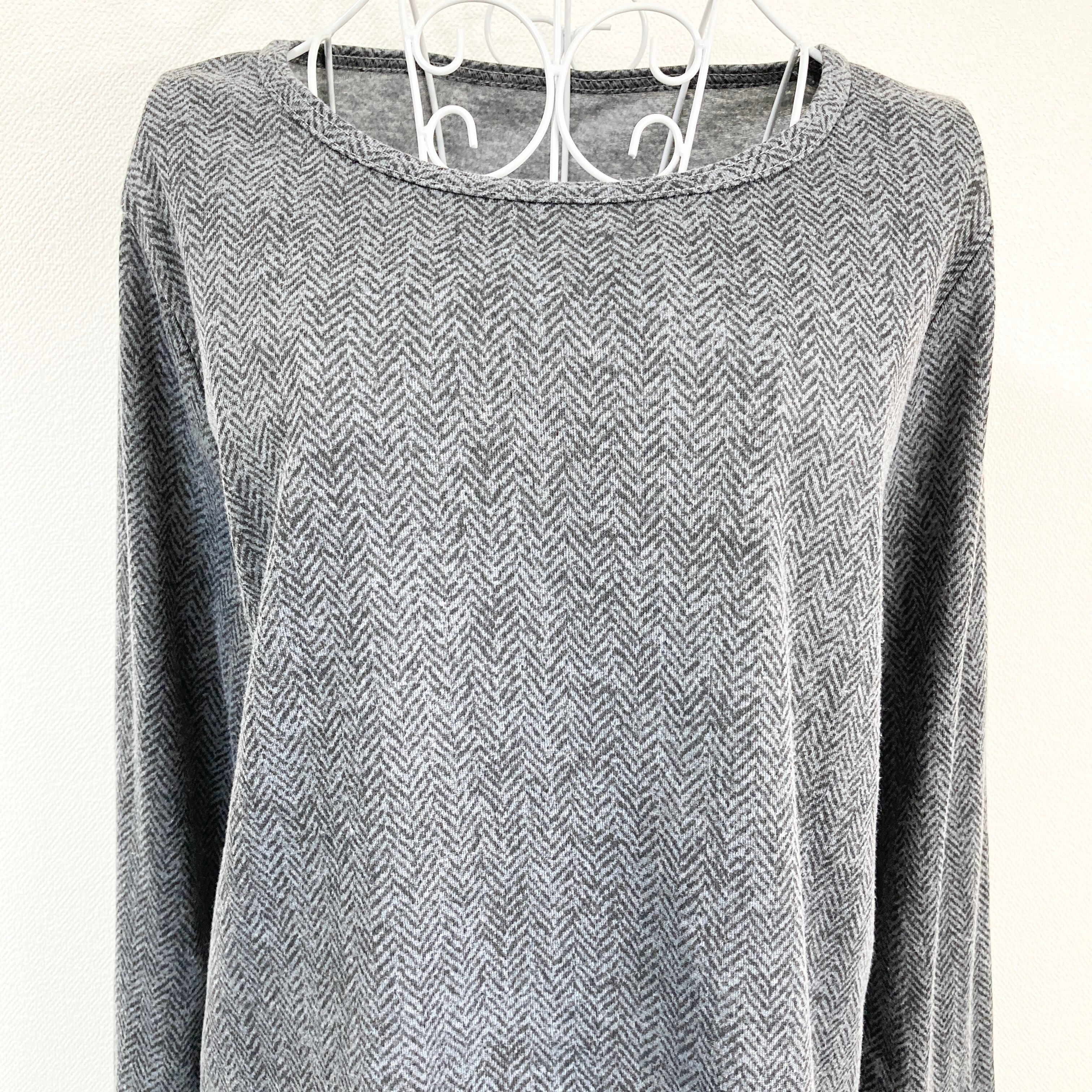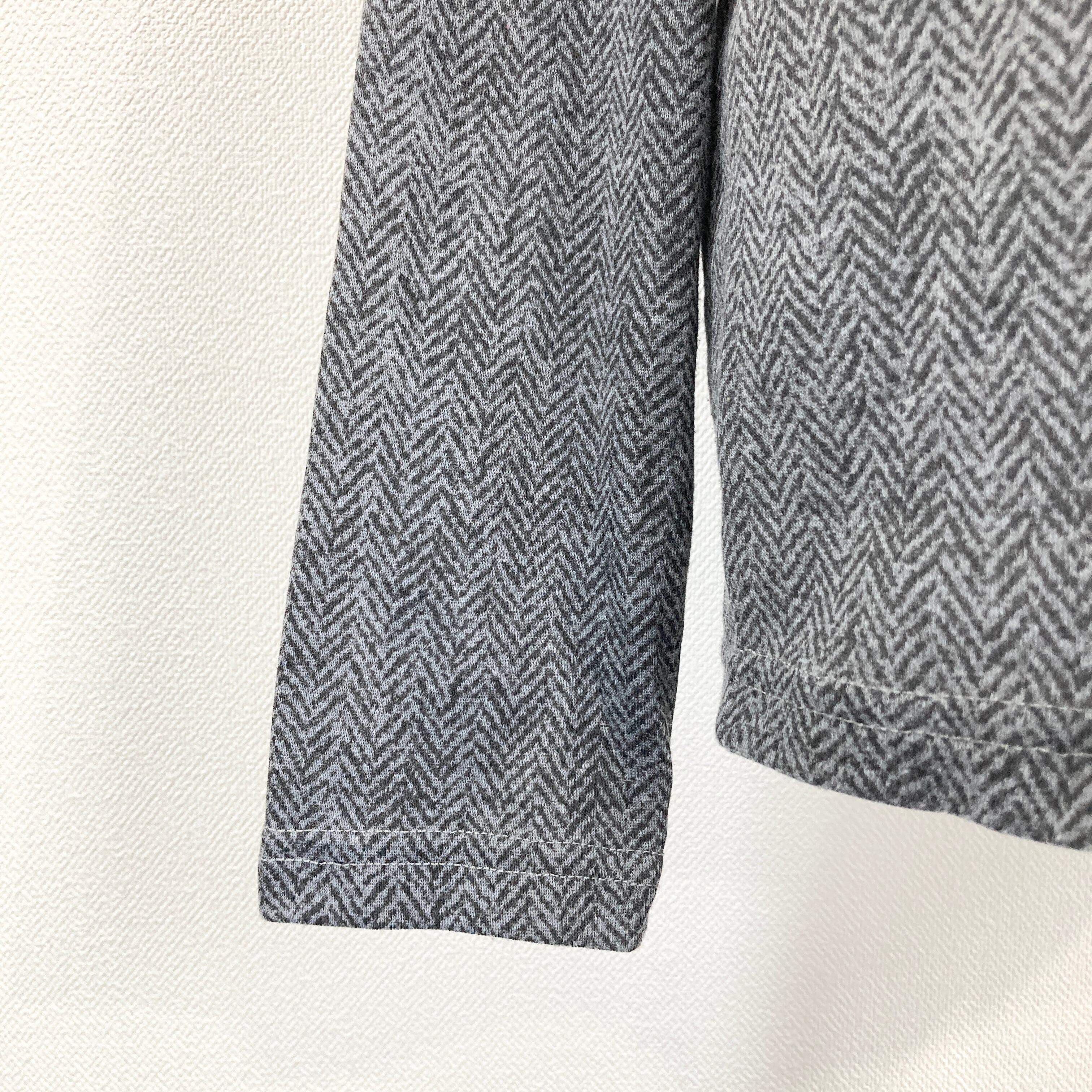 グレーと黒の矢印が重なったような総柄のカットソーで、内側に少々起毛があり秋口から大活躍しそうな商品です(*´▽`*)☆彡
