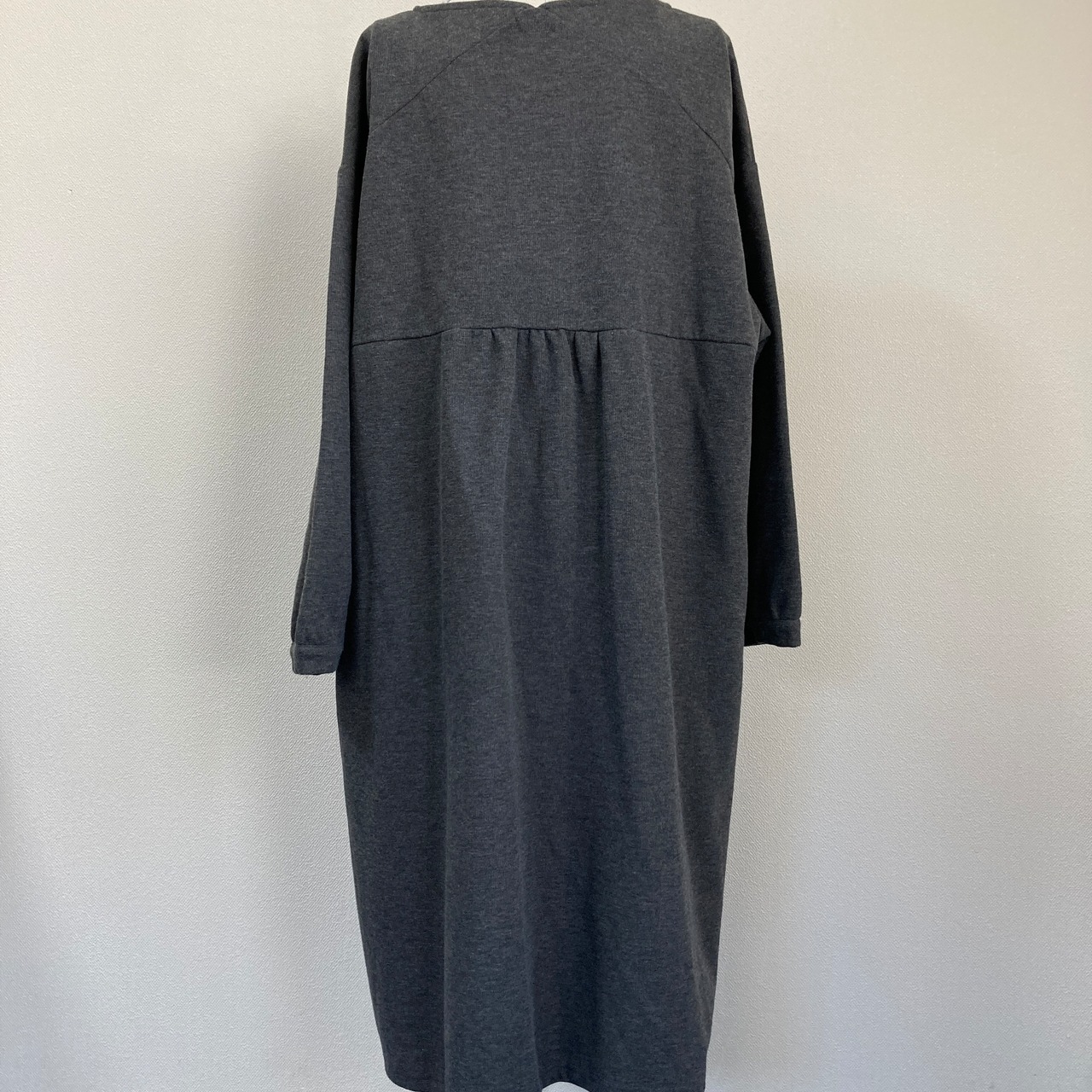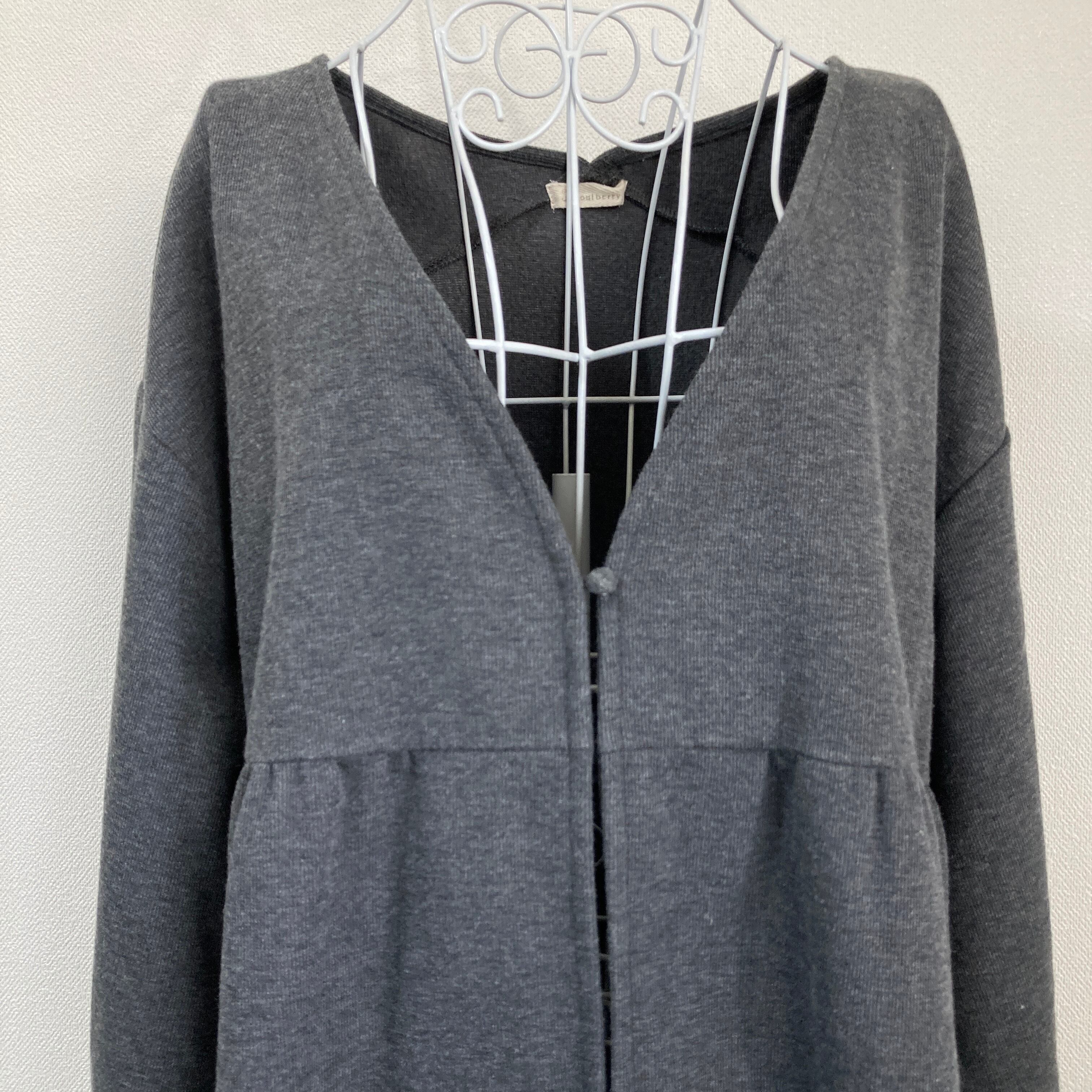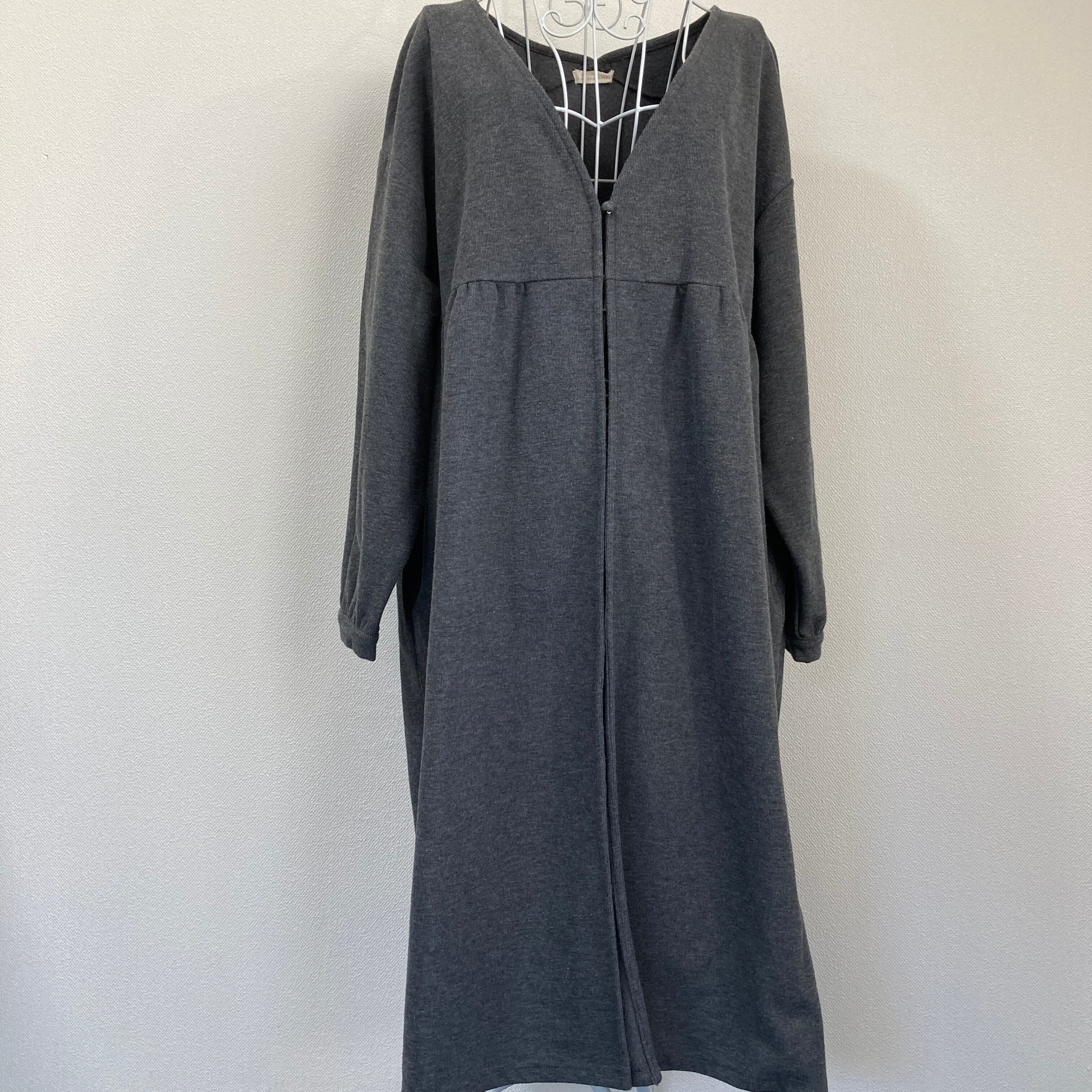 大きめサイズの、グレーのノーカラーコートでサッと羽織れるタイプなので、着やすく万能で、これからの季節に活躍まちがいない商品だと思います(*´▽`*)!!