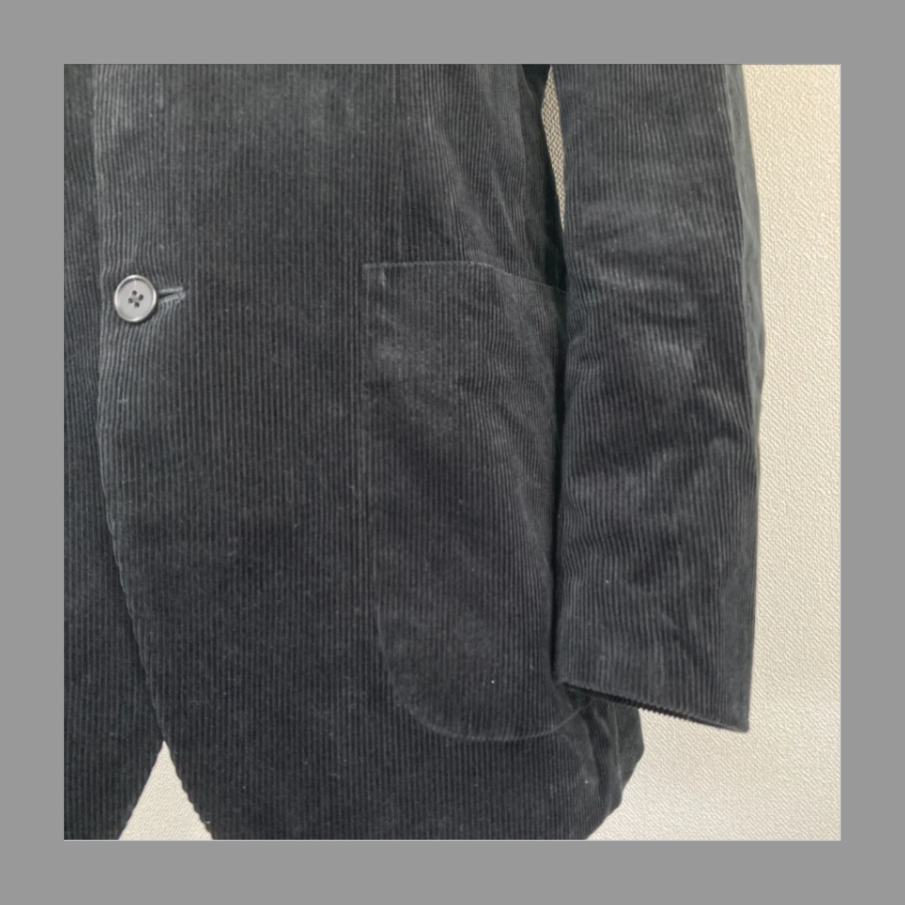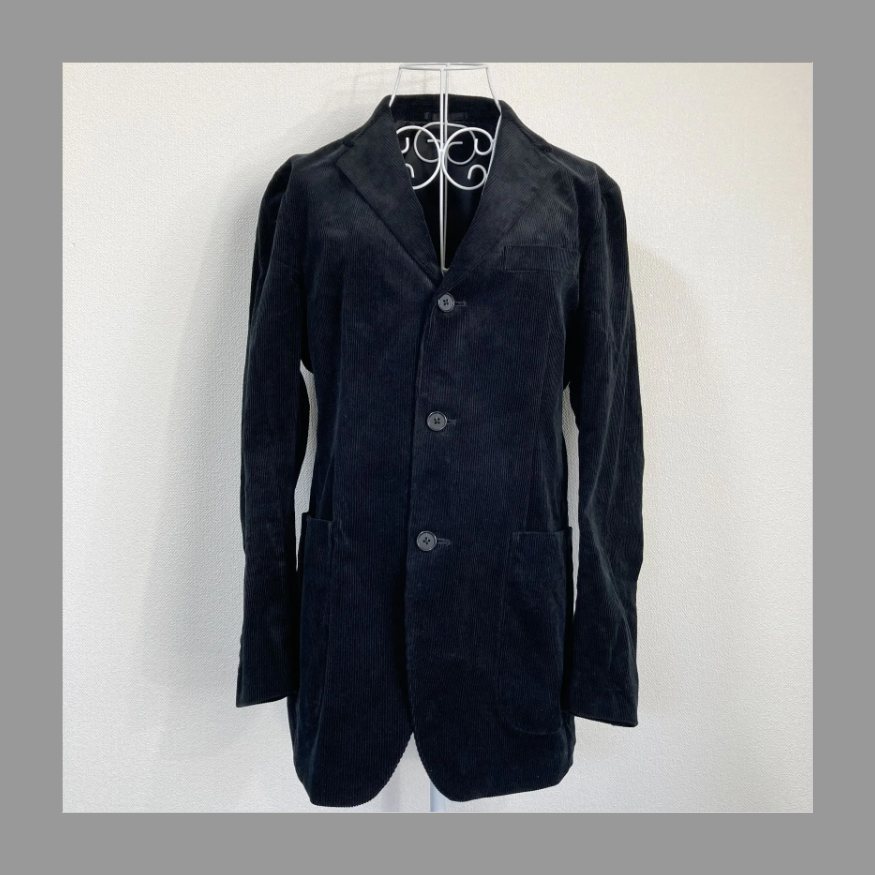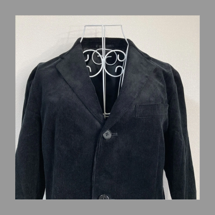 コーデュロイのシンプルなBLACKカラー、しっかりとしたつくりのテーラードジャケットです。