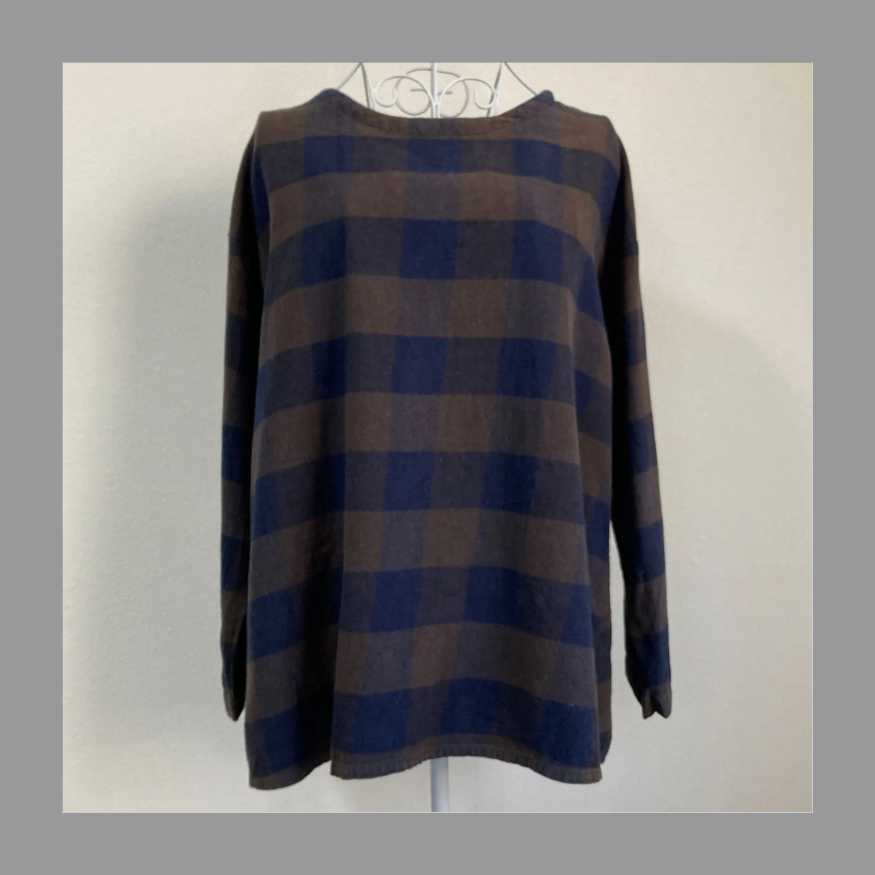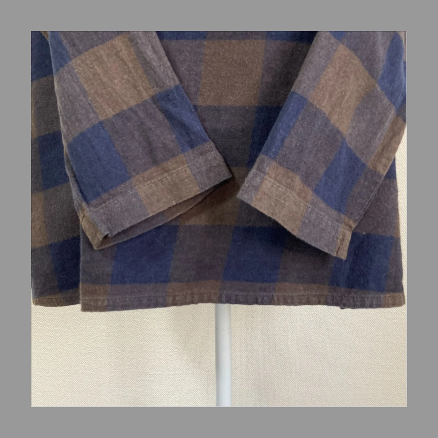 きれいな紺色と茶色のグラデーションのチェックが入った長袖のカットソーです(^_-)-☆