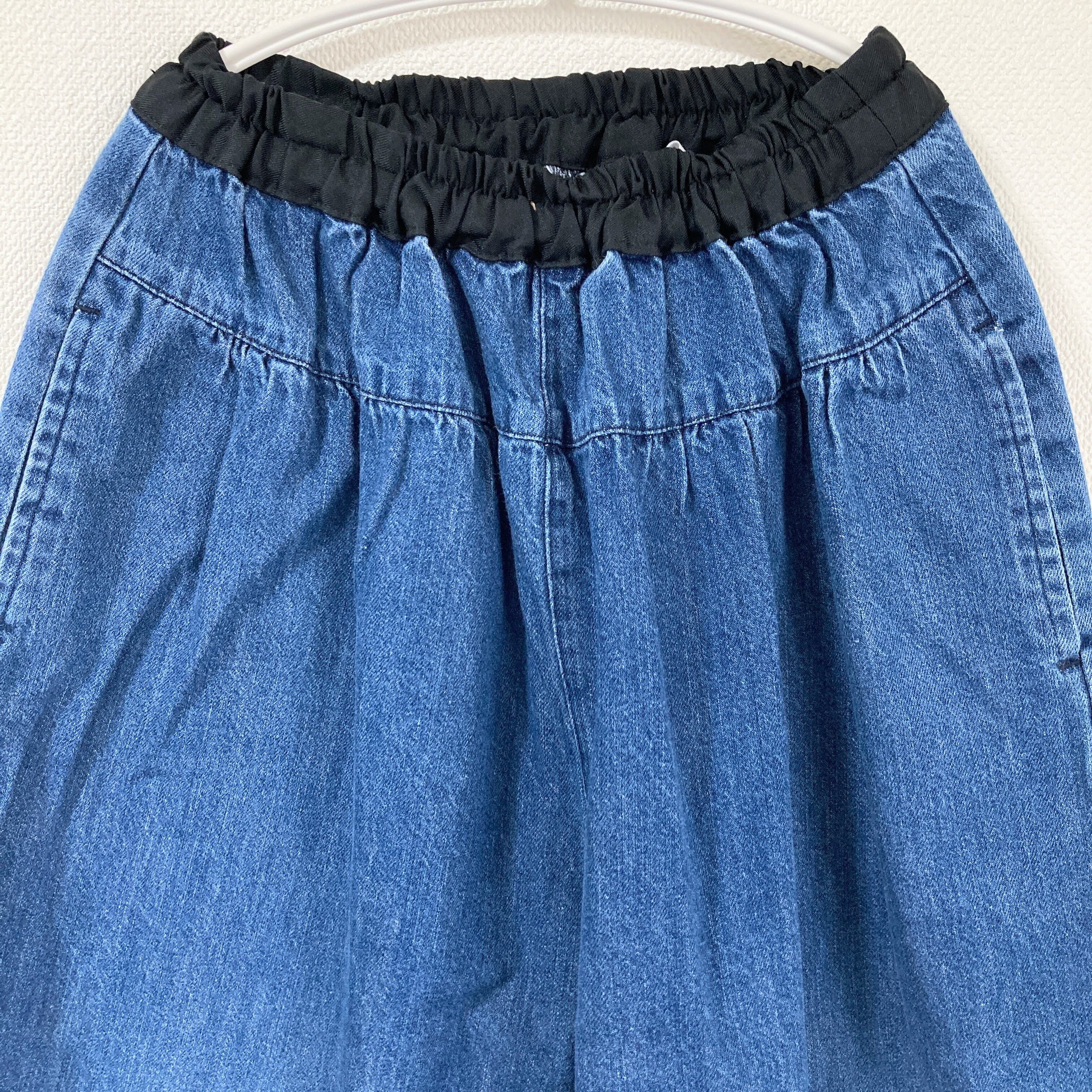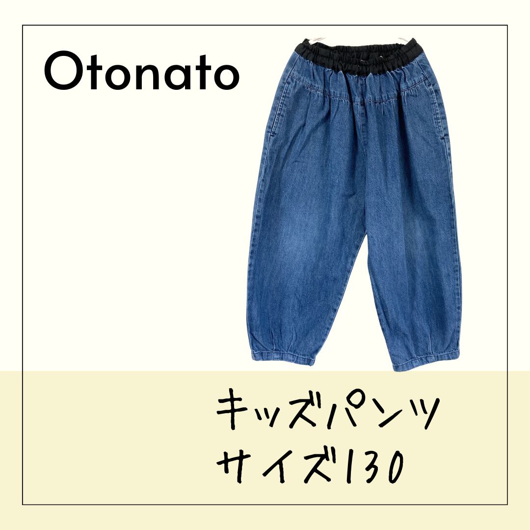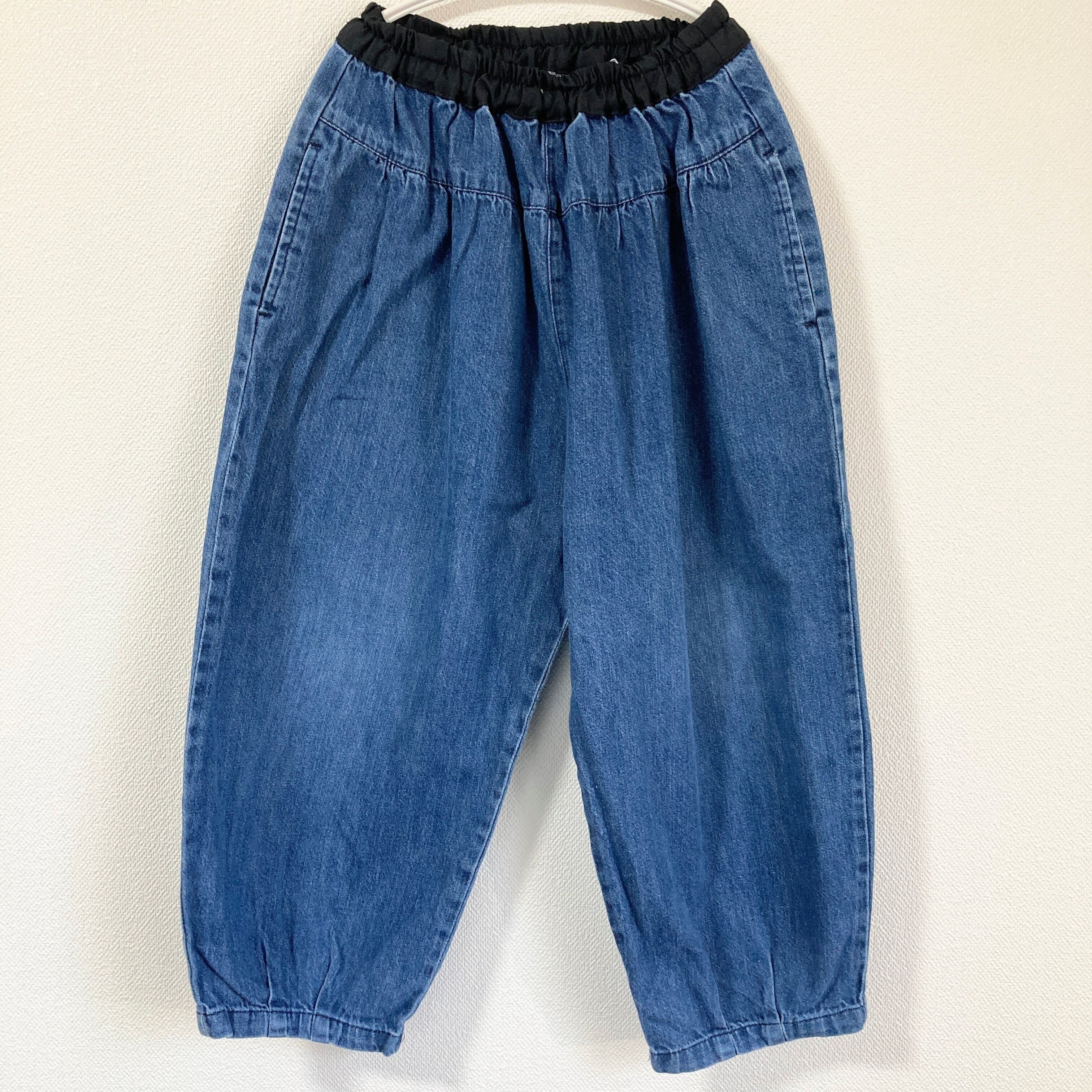 61253 ★ キッズ パンツ【Otonato】130 デニムパンツ デニム生地 バルーンシルエット テーパード ウエストゴム 3ポケット 左右ポケット おしりポッケット 青 BLUE 黒 BLACK USED 古着