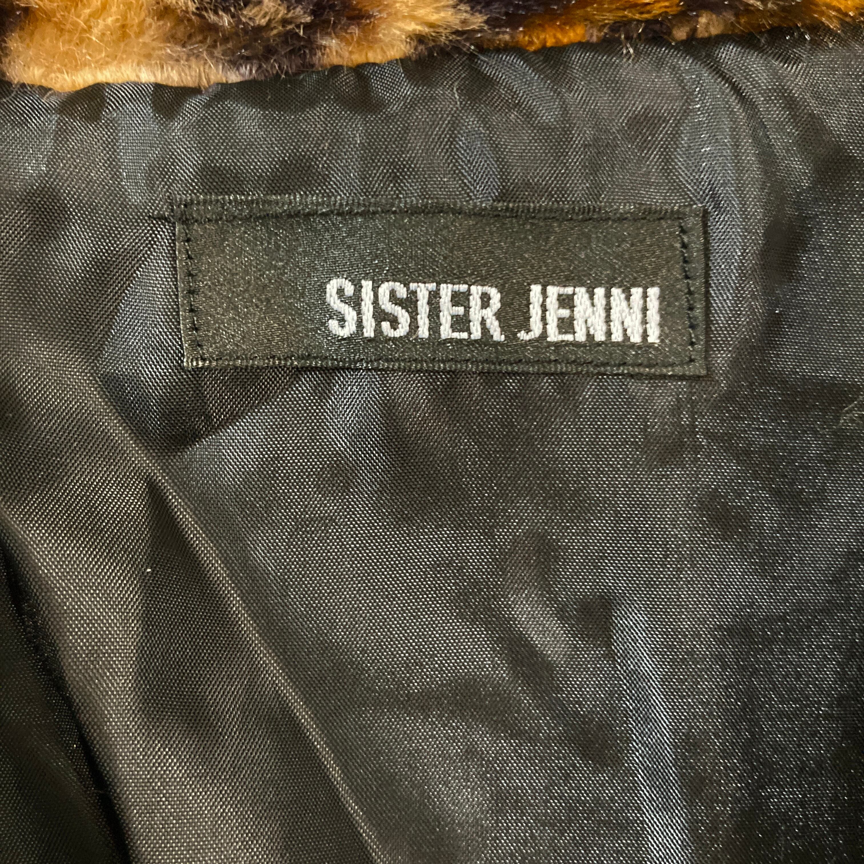 70129 ★ キッズ アウター【SISTER JENNI】140 ファージャケット ボアジャケット ヒョウ柄 アニマル柄 総柄 チャック式 ドローコード ハイネック USED 古着